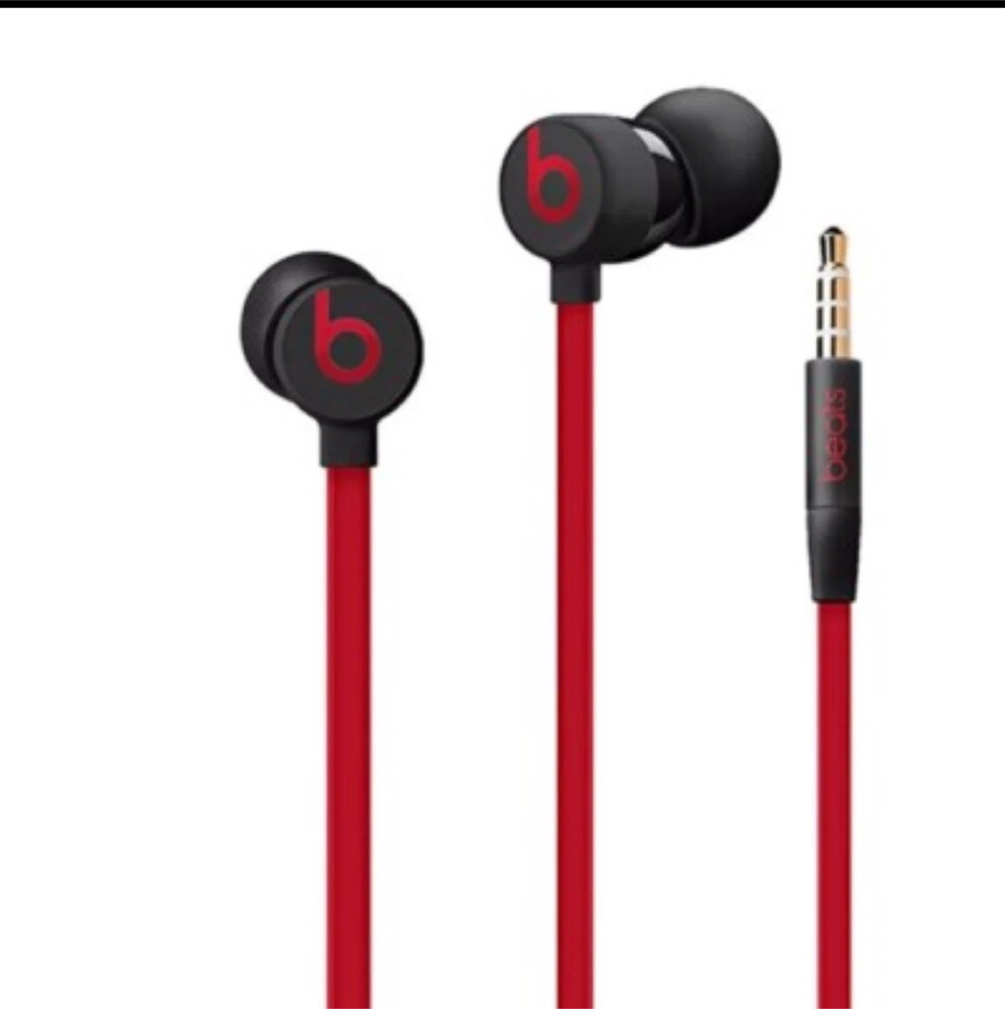Nostalgic 2010s red urBeats wired earphones by Beats by Dr. Dre. These in-ear headphones come with a 3.5mm audio jack. They offer a secure fit with ear tips included. Great for everyday listening!