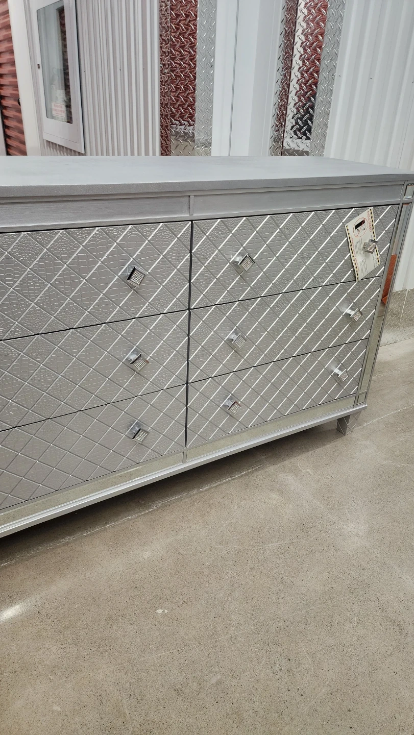 Silver Mirrored Dresser with 6 Drawers