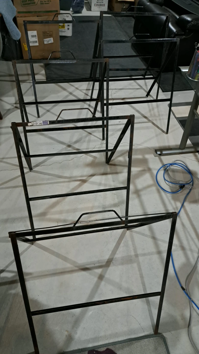 Brand New metal A-frame typically sells for around $100.- each Given that this is a set of six and considering their used condition, I've priced them to offer great value of $250.-