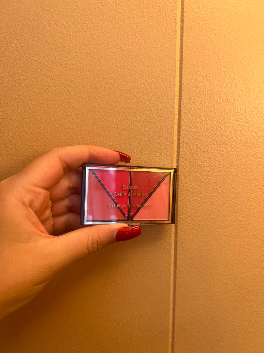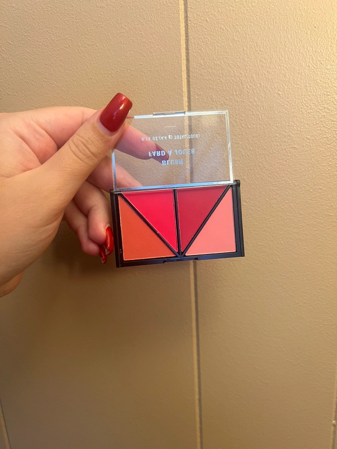 blush palette with four beautiful shades. It's a great way to add a pop of colour to your look! The box says it was made in China.
