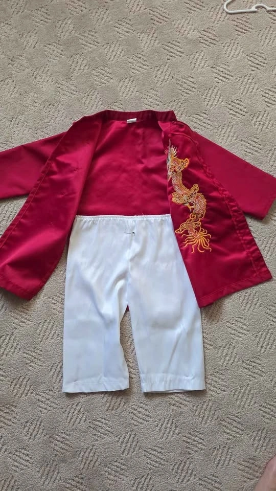 Incredibly cute red Ao Dai, perfect for Lunar New Year or Tet. Comes with white pants. In terrific condition with a detailed embroidered dragon on the chest. Made of very sturdy material that does not snag or rip. Perfect for photos and family celebrations. Pick up in Surrey from 148th Street and 69th Ave. Can meet in Burnaby near Brentwood area on certain days, please inquire to arrange.