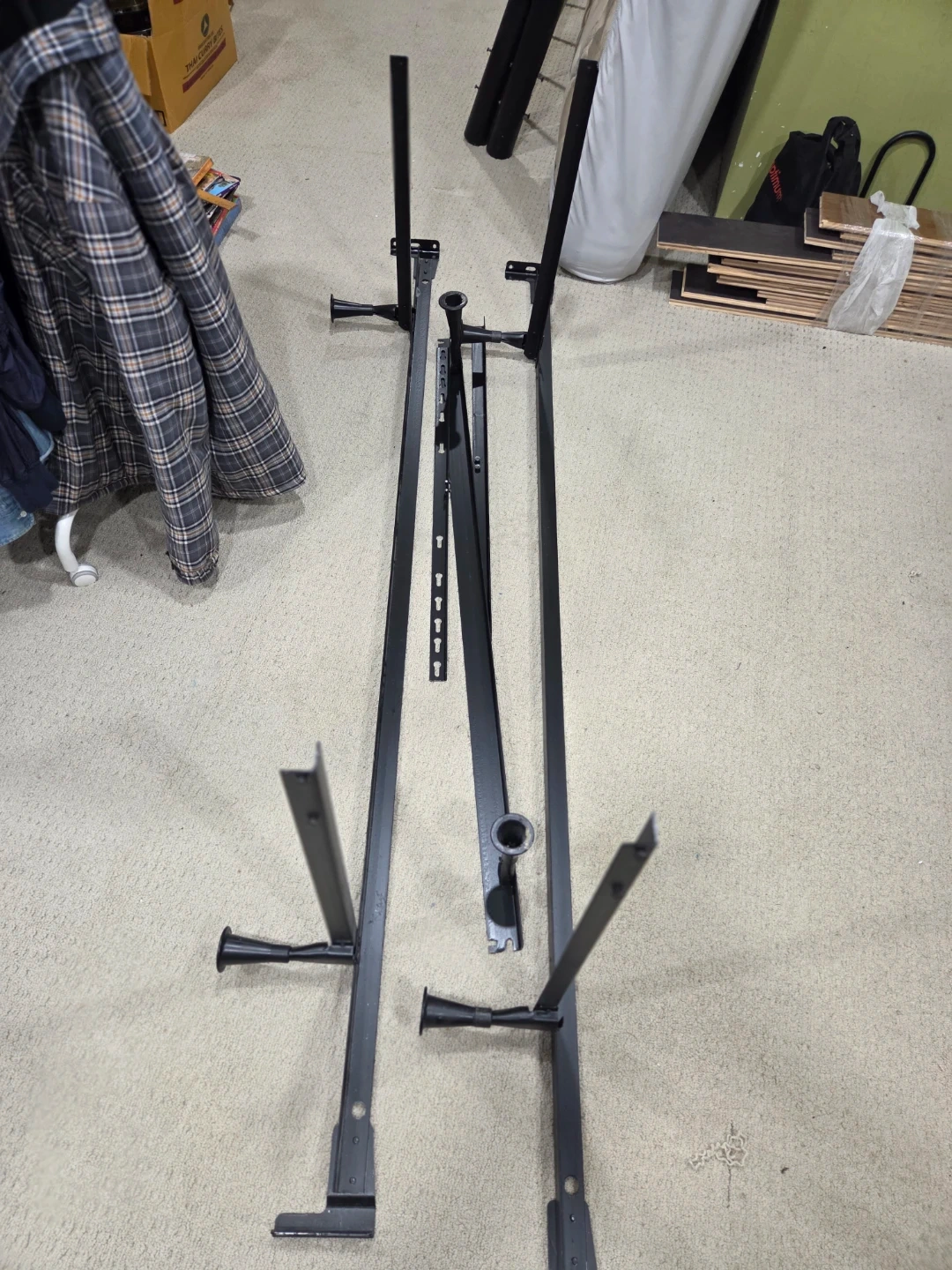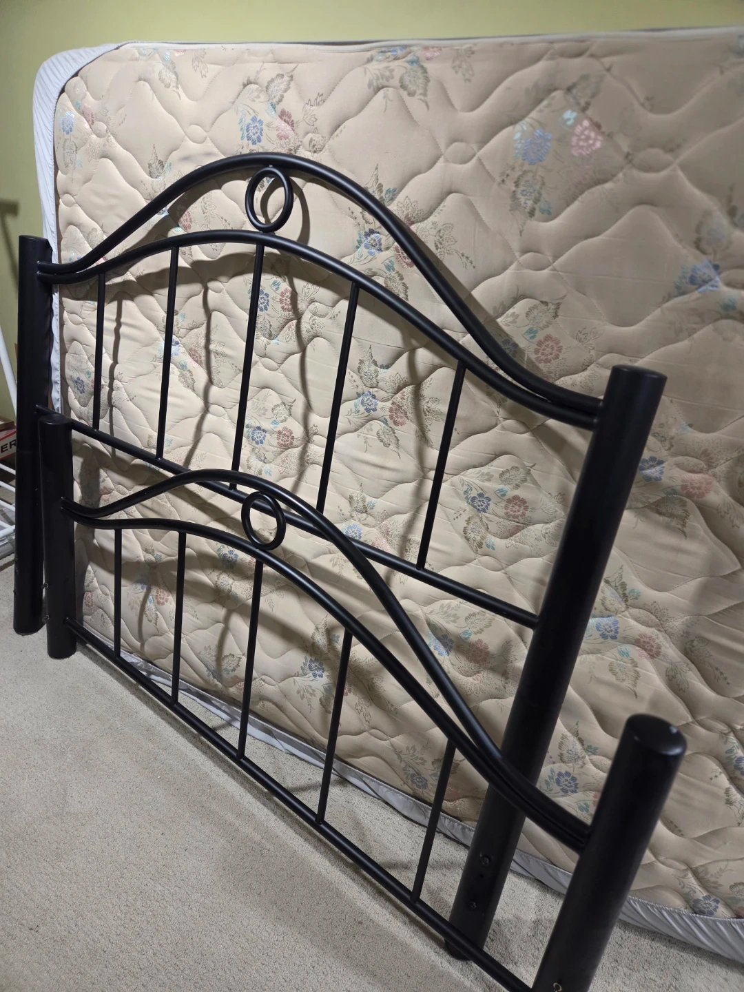Selling a black metal double-bed frame in excellent condition. All pieces are included as shown in the pictures. Sturdy and ready for a new mattress!