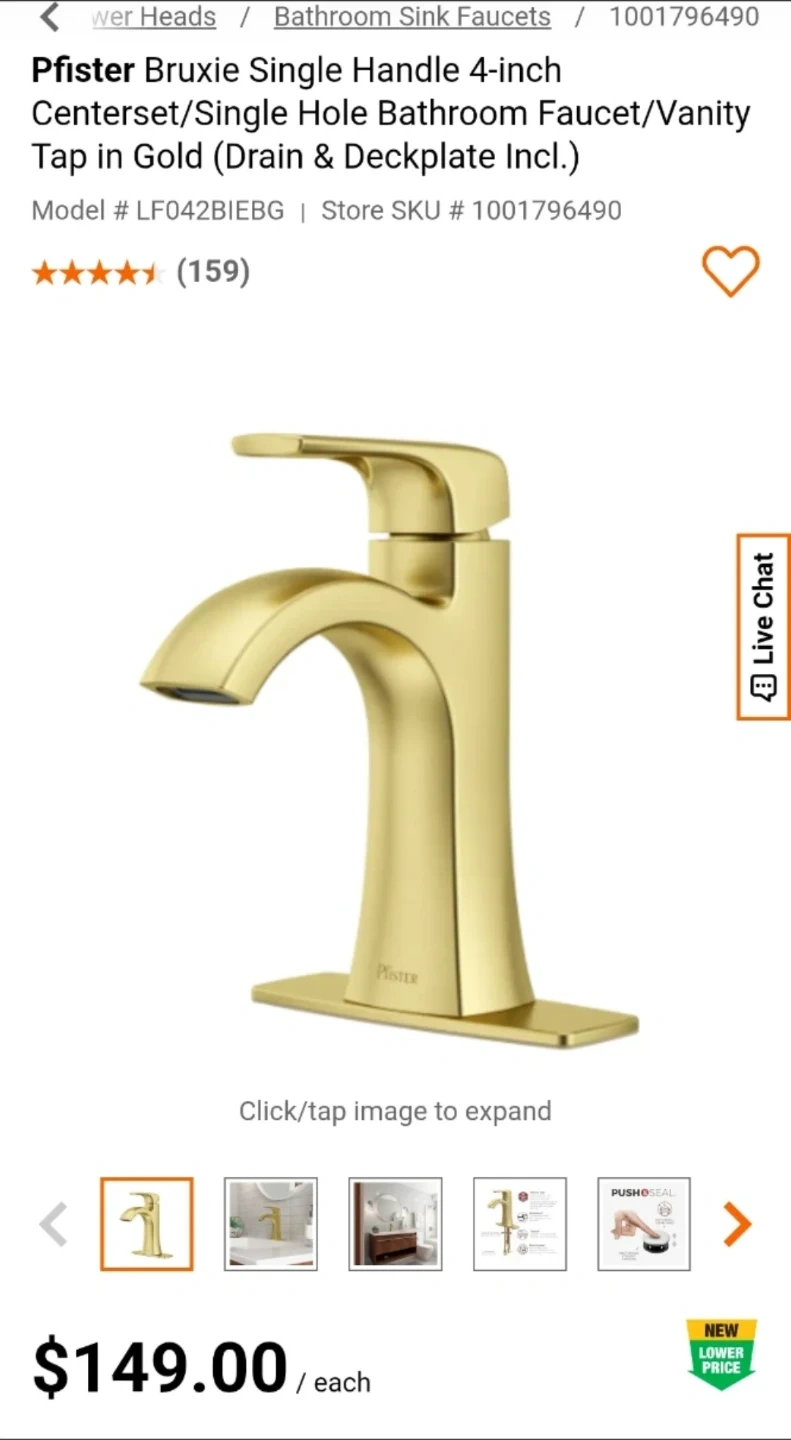 Pfister Bruxie single handle faucet in gold. Features Pforever Seal™ advanced ceramic disc valve technology. Includes 1/2" male connection. Deck plate not included. Brand new, never used. $149 + hst in store.