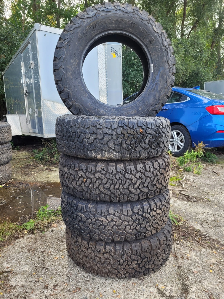 Set of BFGoodrich All-Terrain T/A KO2 tires. These tires are known for their durability and off-road performance. Excellent for trucks and SUVs.