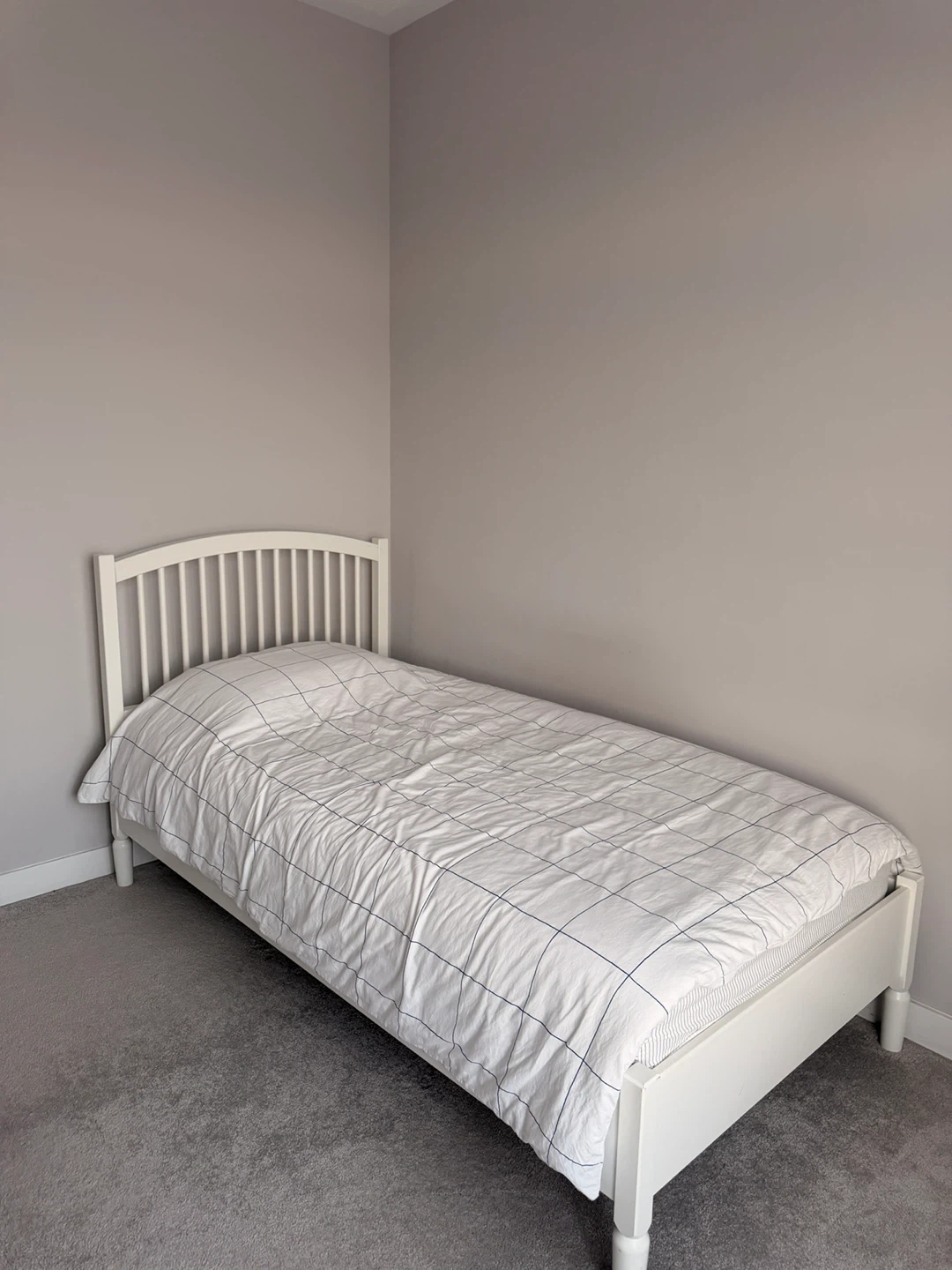 White Twin Bed Frame with Slatted Headboard