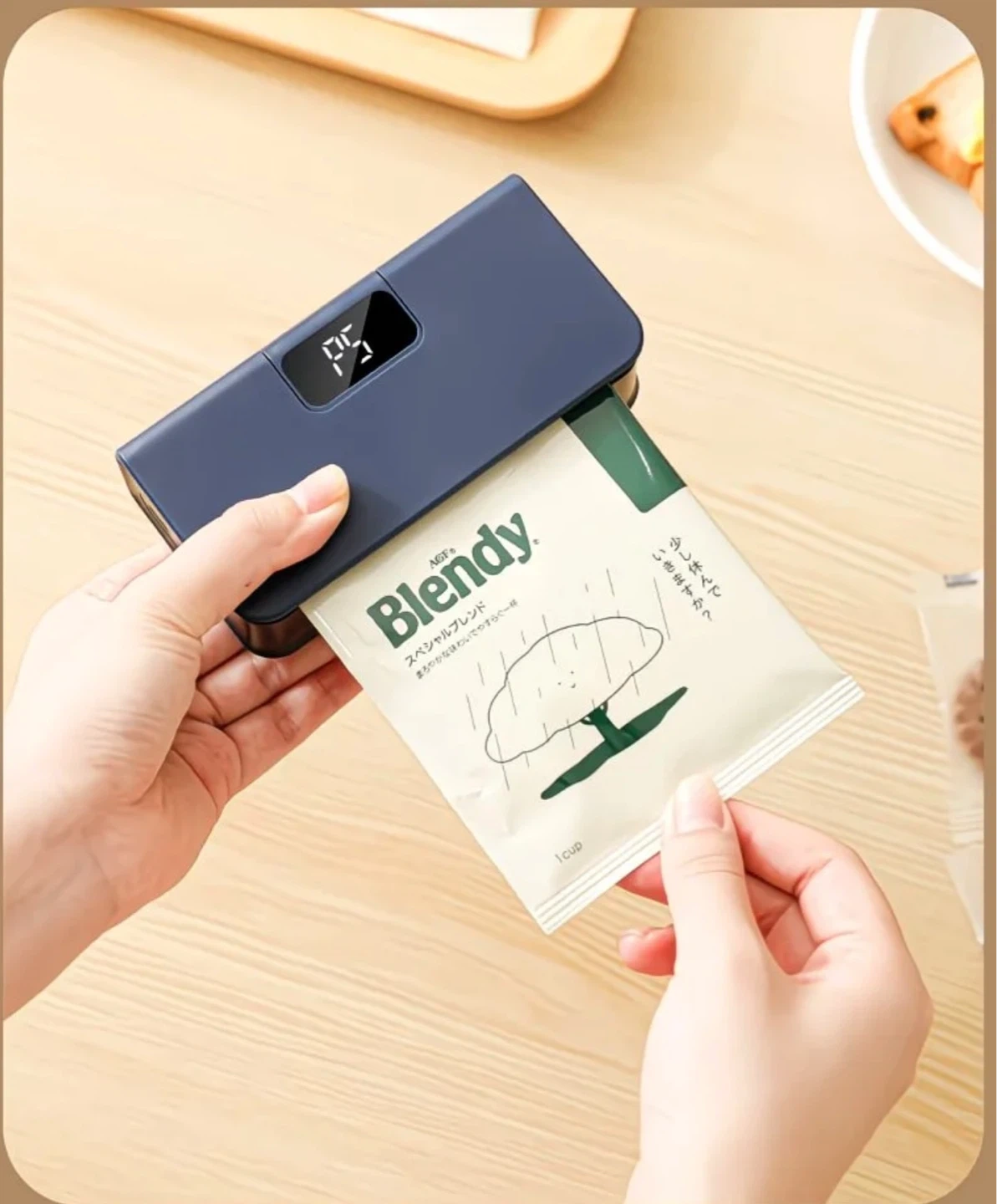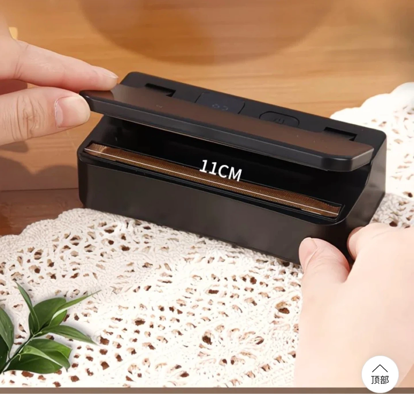 This is a 2-in-1 portable mini sealer. It has a sealing width of 11cm and is black in colour. Perfect for keeping snacks fresh!