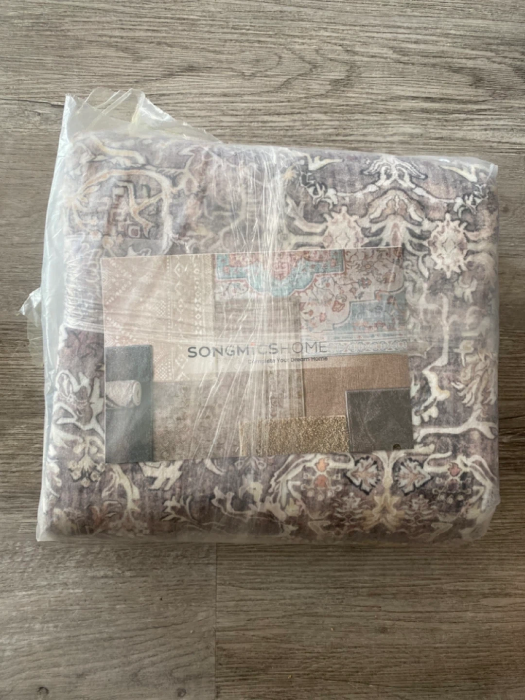 Brand new never used SONGMICS HOME patterned area rug. This rug is 100% polyester, super soft. Has anti-slip dots on the back so it won't slide around. Machine washable, easy to clean. Still in its original packaging.