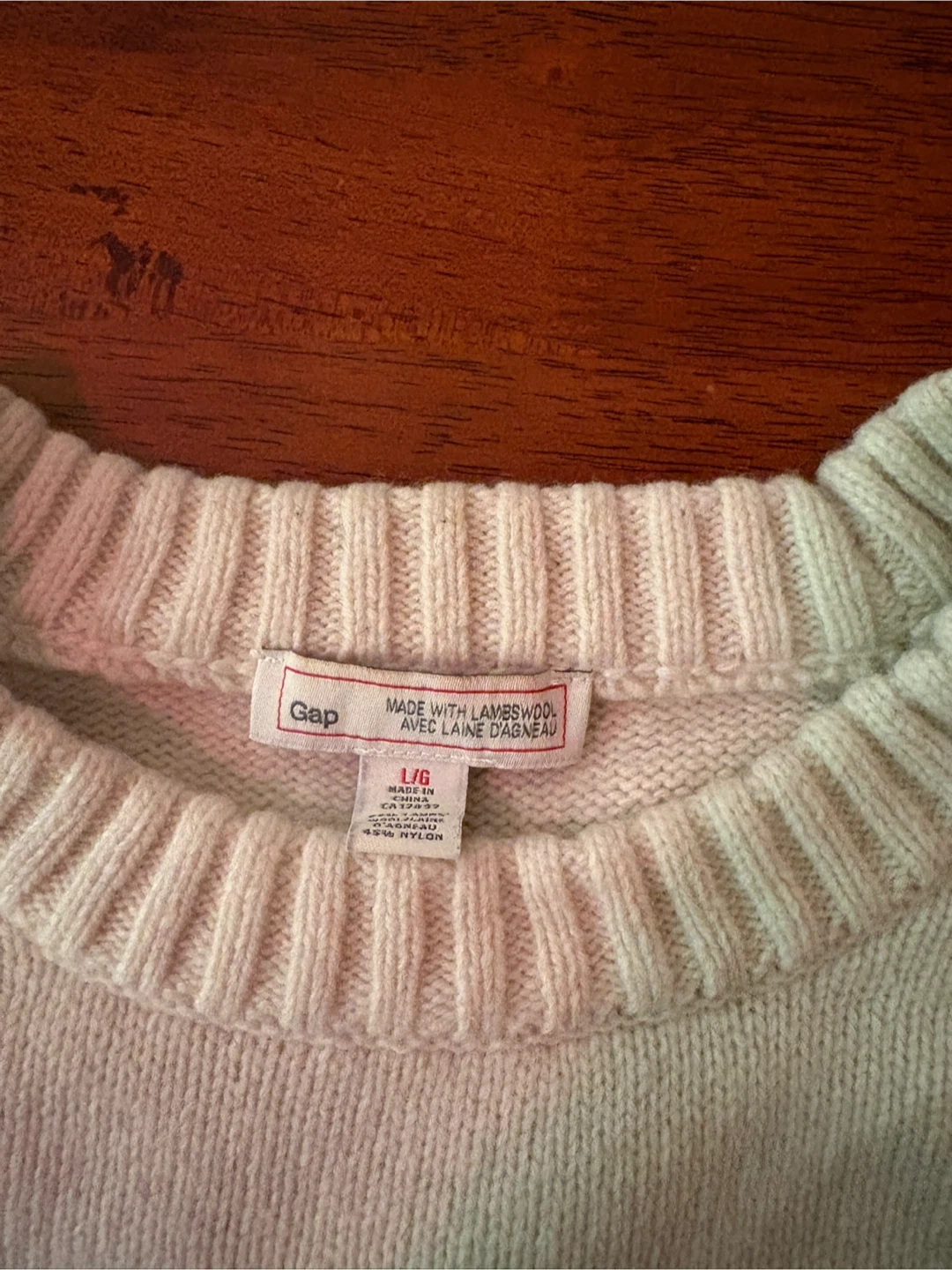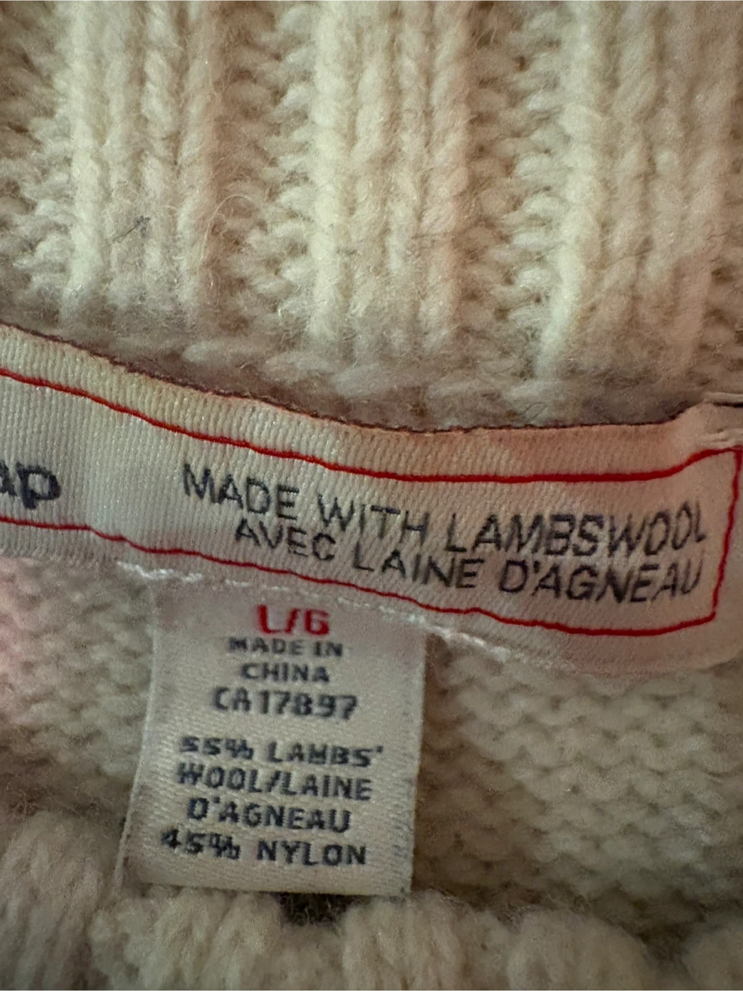 Gap sweater is made with lambswool and nylon. It's a size men’s large. Selling because not his size. Good condition no pilling with lots of life left.