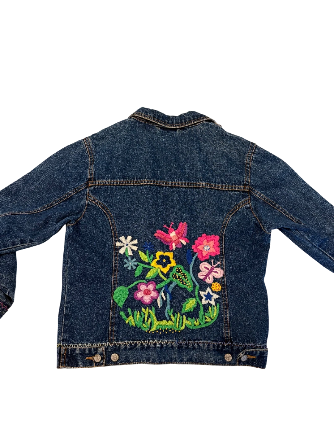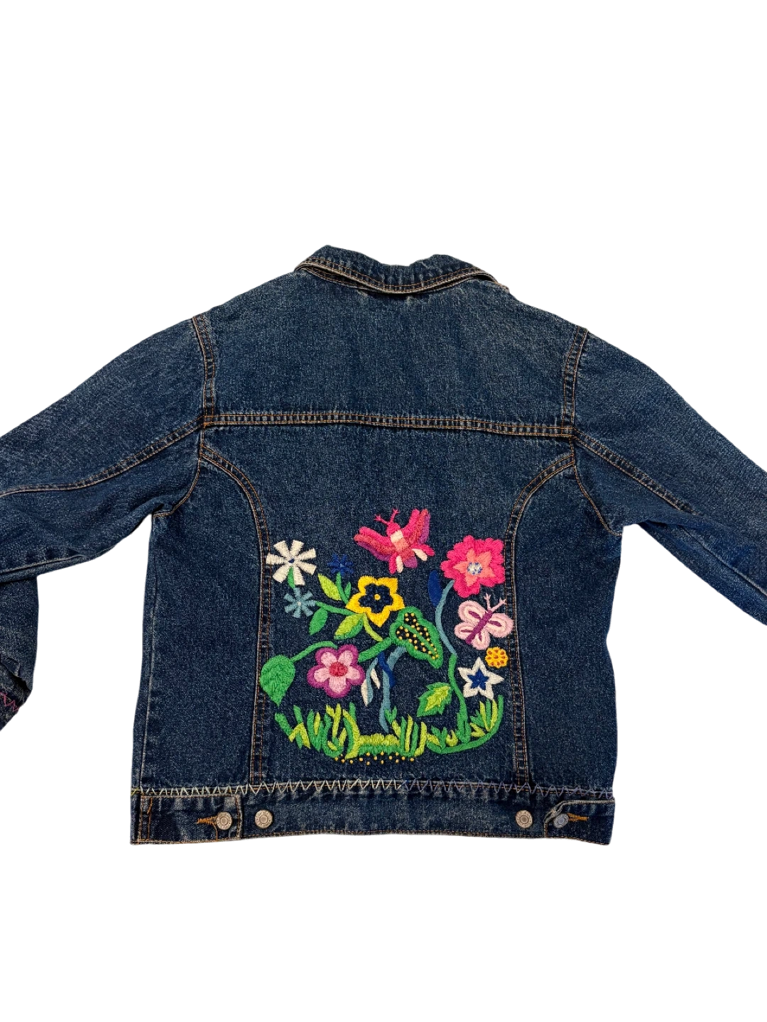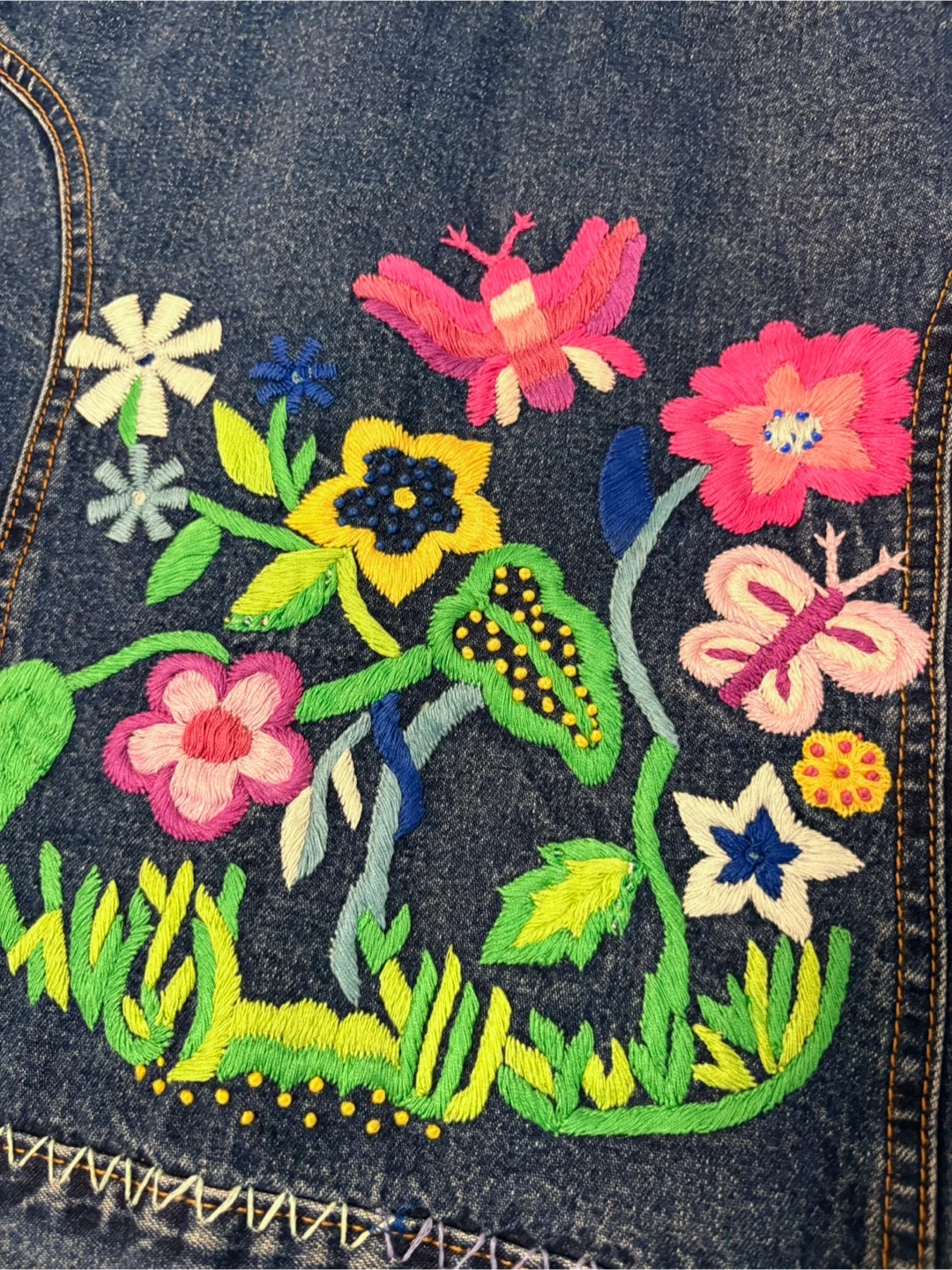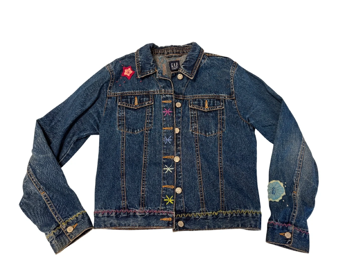 Cute GAP denim jacket with unique floral embroidery on the back!