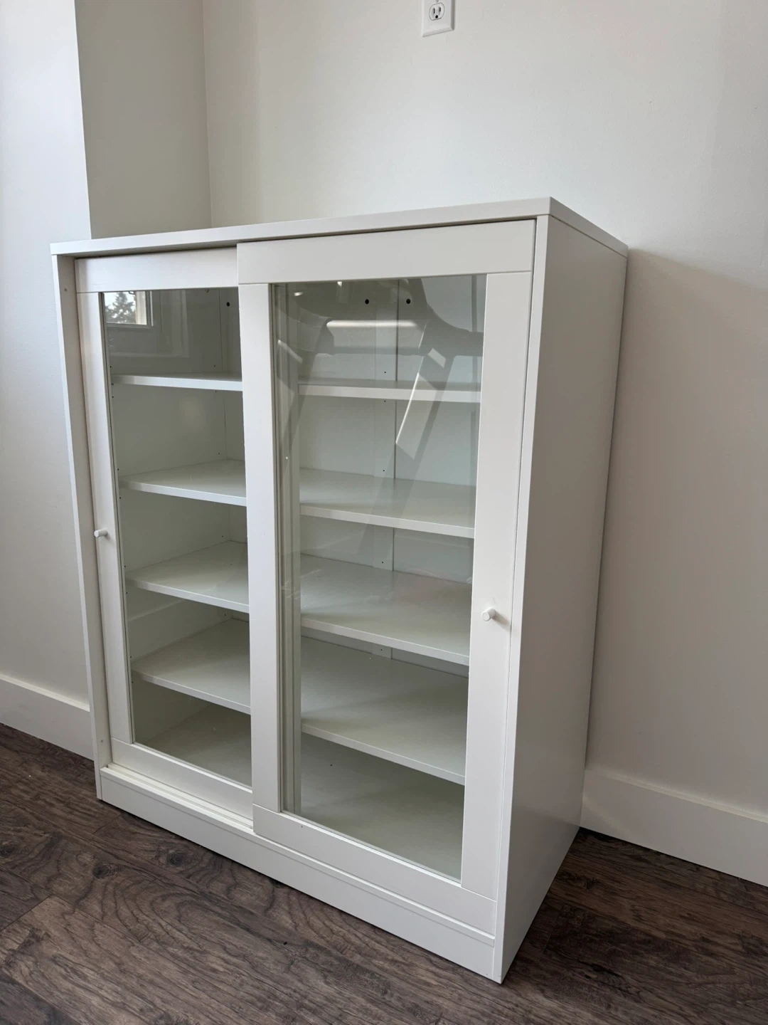 White display cabinet with sliding glass doors