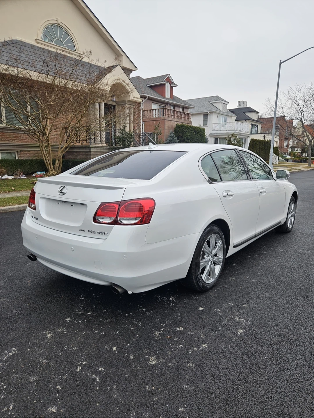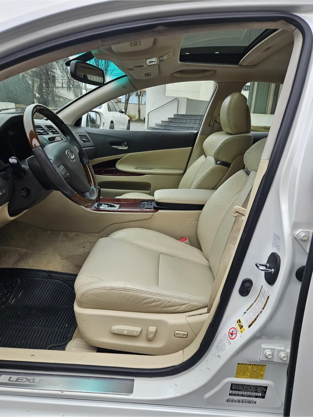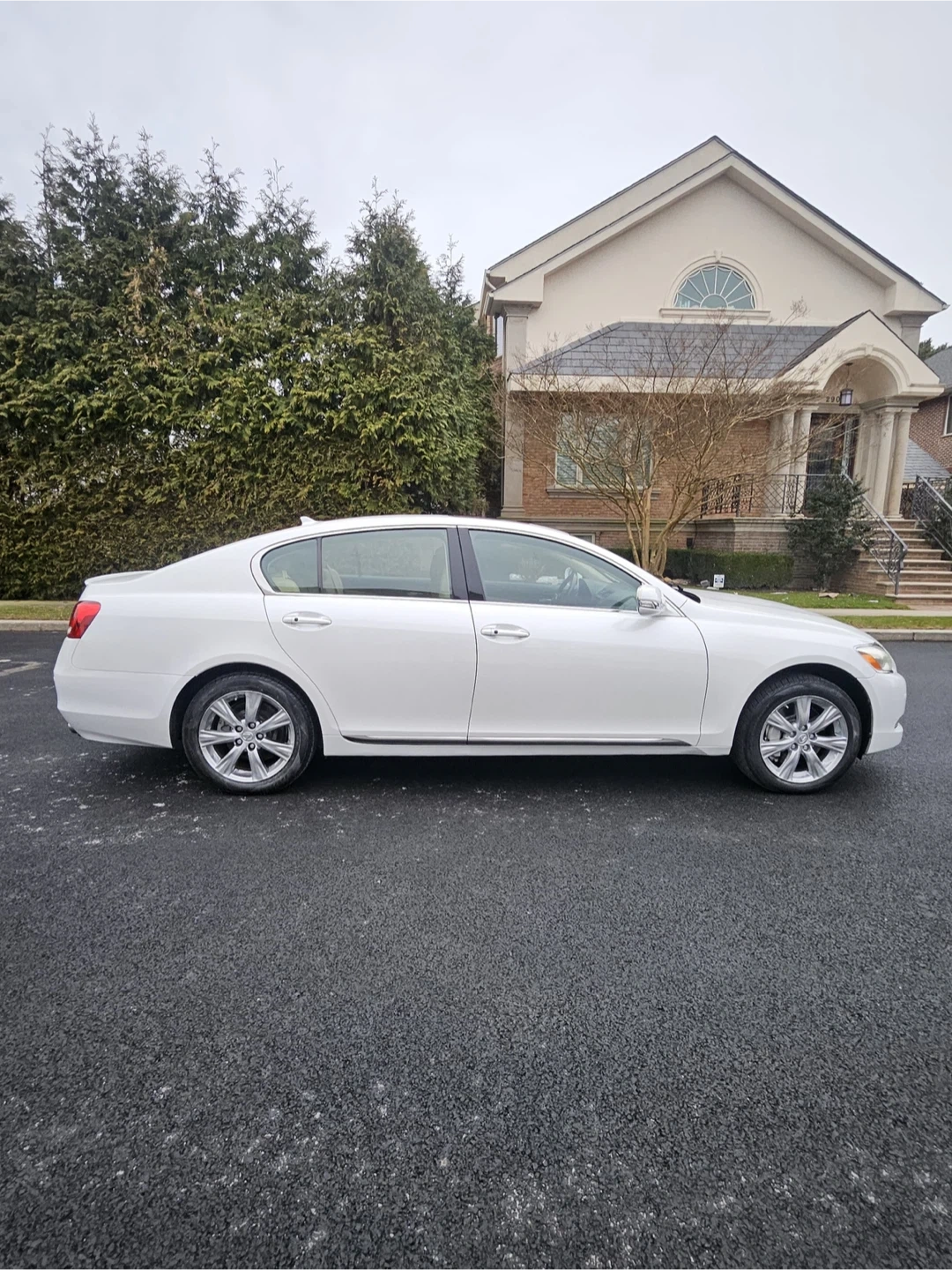 White Lexus GS 350 AWD sedan with a tan leather interior. Features a sunroof and premium wheels. This luxury sedan offers a comfortable ride and reliable performance.miles125k