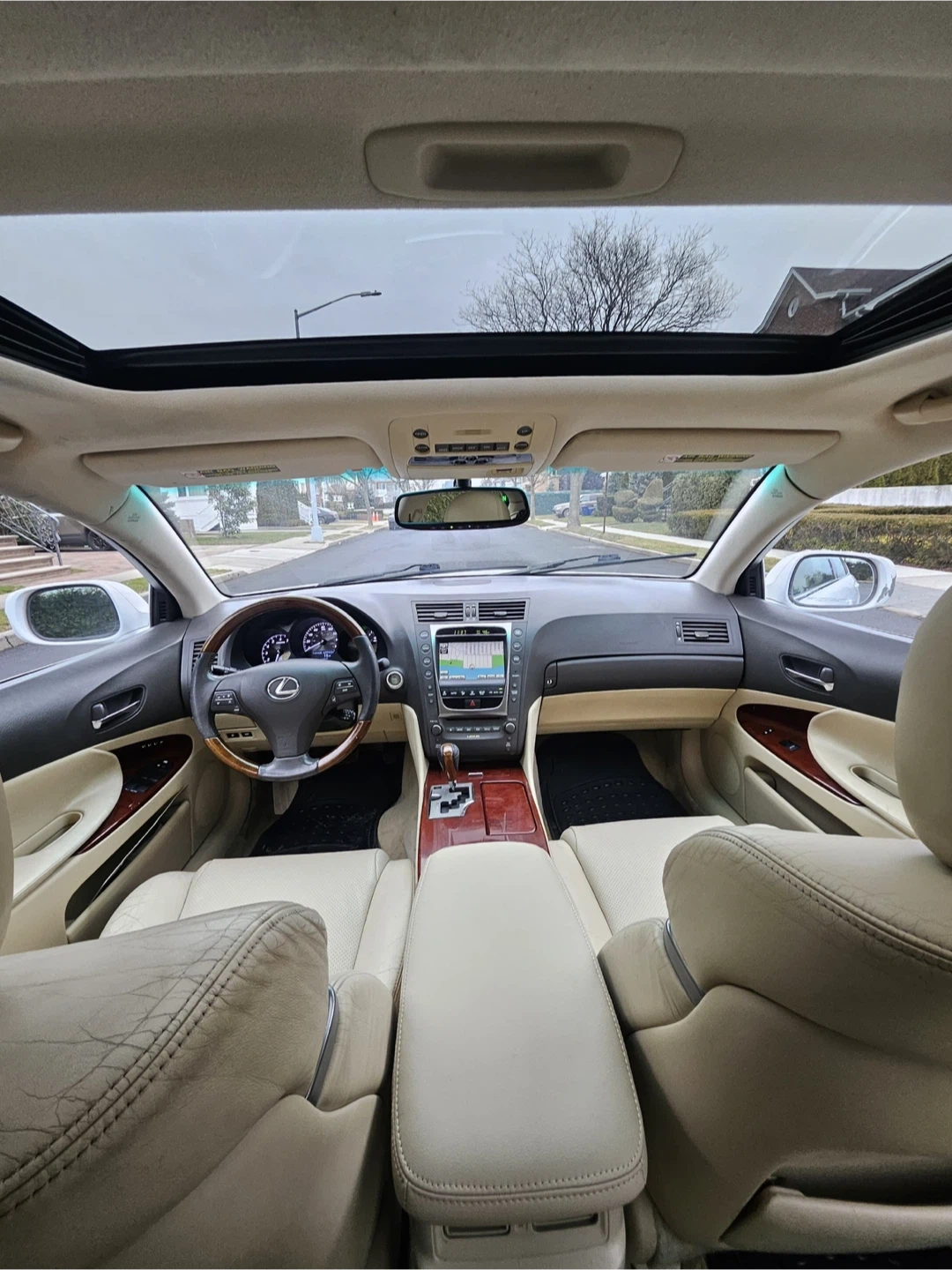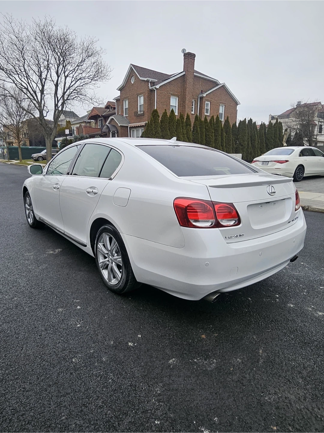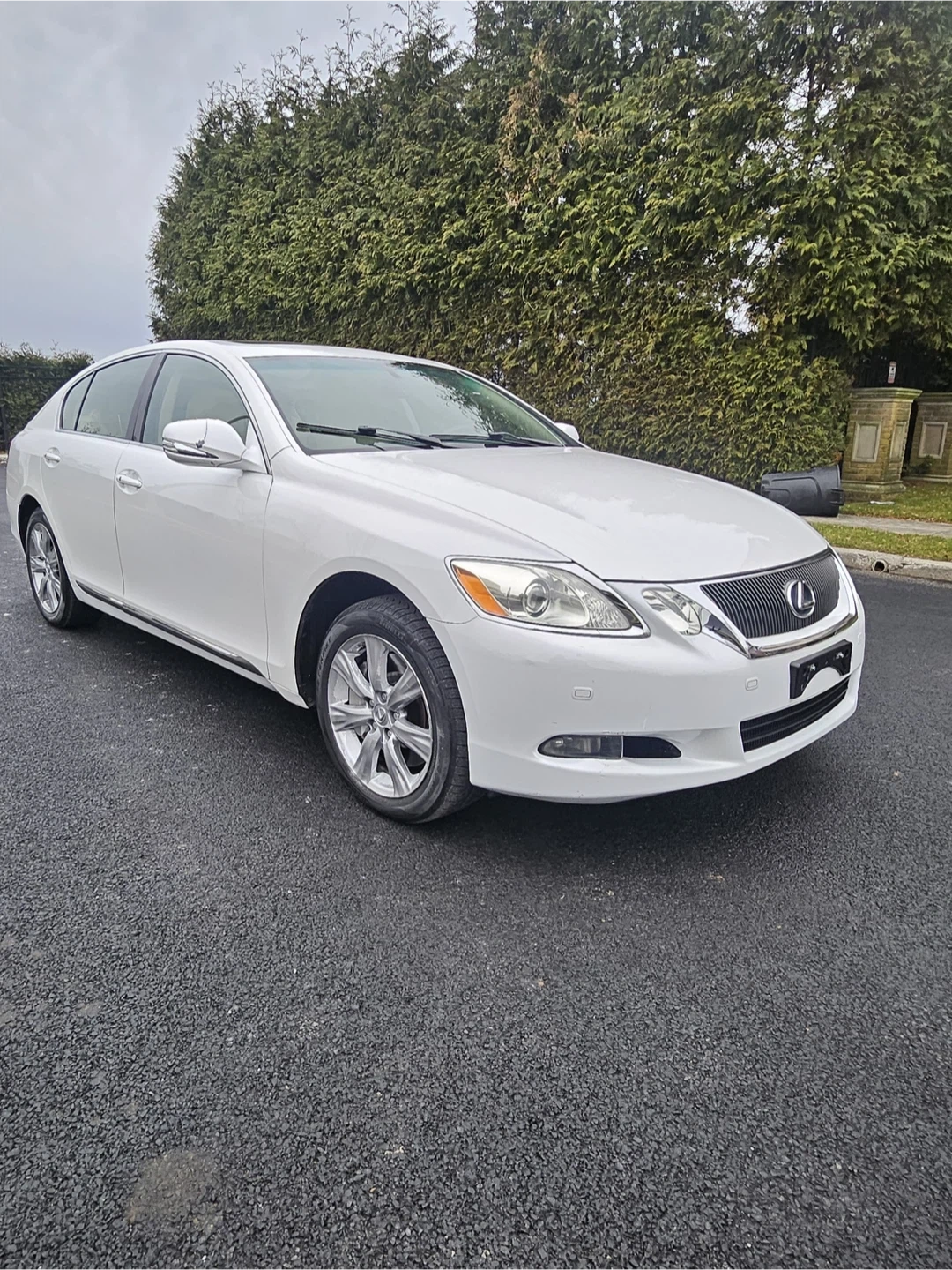 White Lexus GS 350 AWD sedan with a tan leather interior. Features a sunroof and premium wheels. This luxury sedan offers a comfortable ride and reliable performance.miles125k