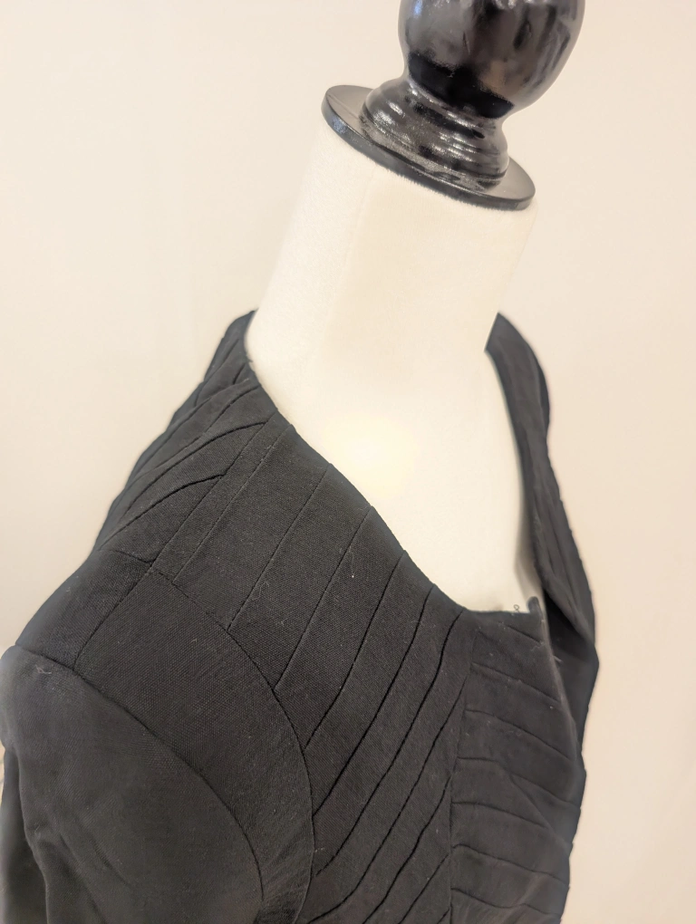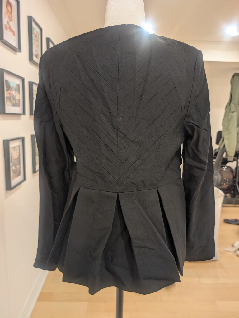 Selling a stylish black blazer from Cameo in size M! It's in great condition and features a unique and flattering pleated design. Elegant detailing and fitted waist line are so chic. Perfect for adding a touch of sophistication to any outfit
