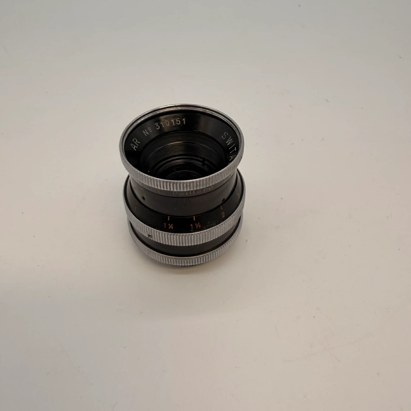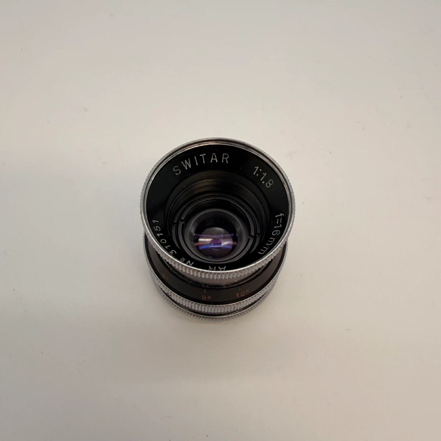 Vintage Kern Paillard Switar 16mm f/1.8 cine lens made in Switzerland for Bolex 16mm film cameras.