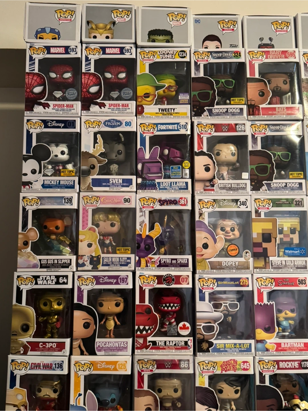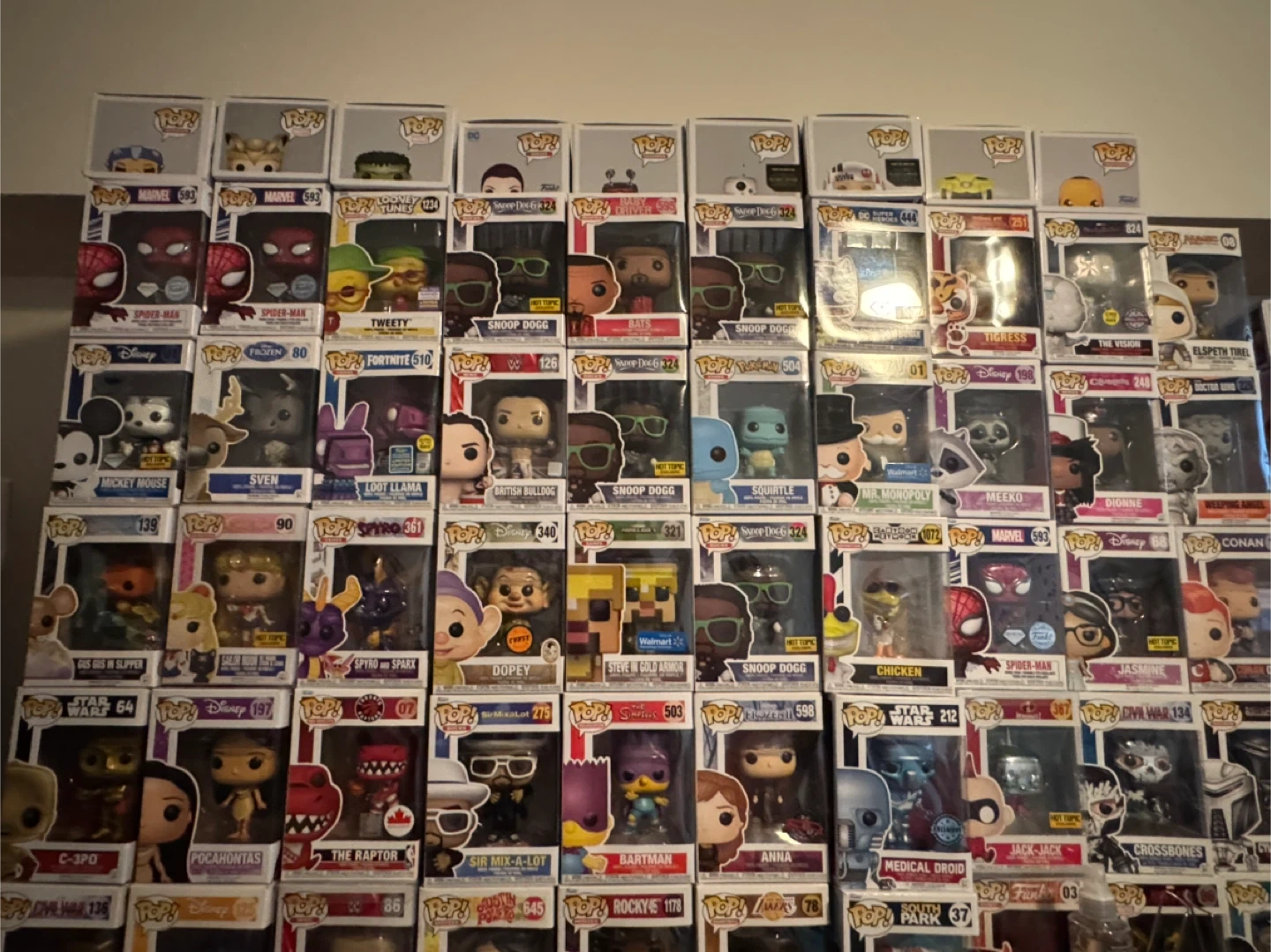 This is a collection of various Funko Pop! vinyl figures, featuring popular characters from different franchises. Each figure is a collectible item, typically standing around 3.75 inches tall. They're great for display and collecting!