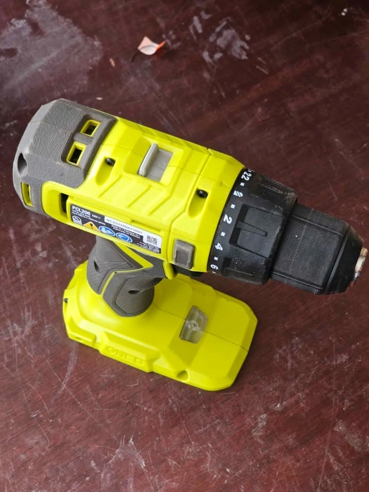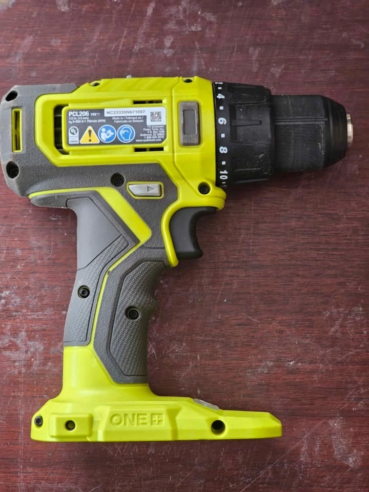 Ryobi ONE+ 18V cordless drill – tool only (no battery, no charger). Model: PCL206. Features a 1/2" keyless chuck, variable speed, adjustable clutch settings, and forward/reverse. Works with all Ryobi ONE+ 18V batteries. In good working condition with light cosmetic wear from normal use. Perfect for home projects or as a spare drill.