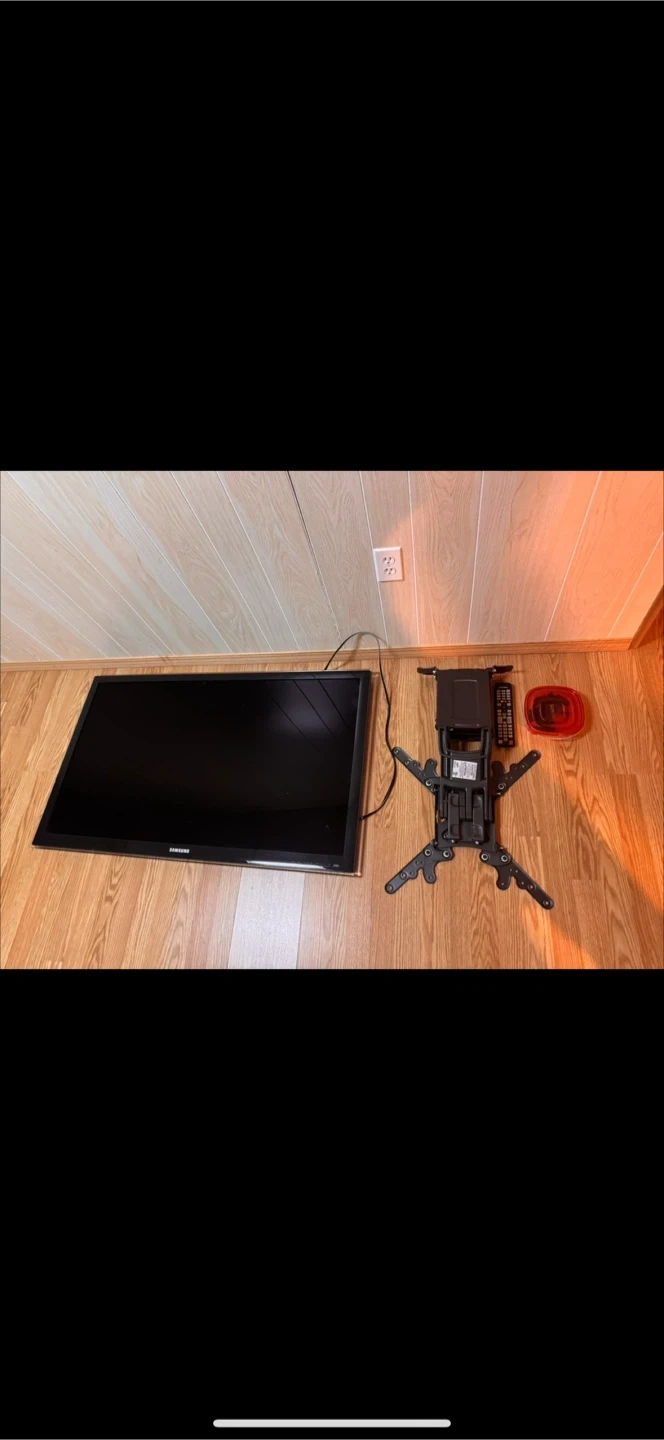 Samsung 48 inch size flat-screen TV with an adjustable wall mount and remote. Mount is compatible with most TVs.Not a smart-tv.