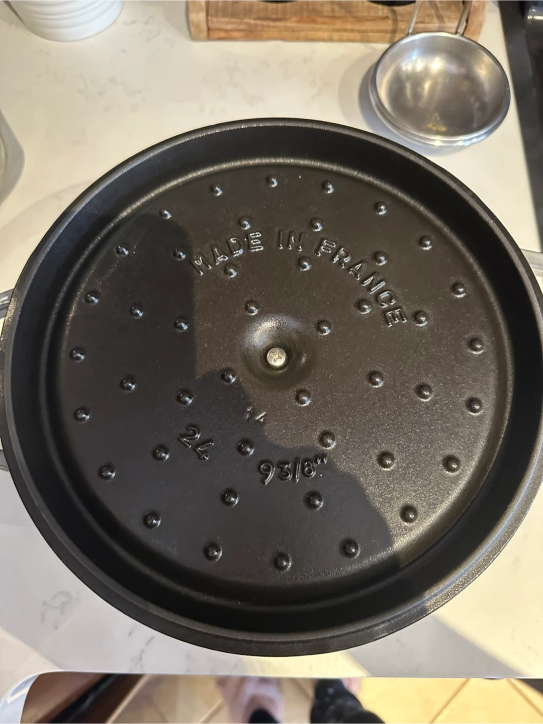The 4.7-liter (5 QT) Tall Cocotte is a taller version of the classic 3.8-liter (4 QT) cocotte, making it the ideal tool for cooking larger quantities, without taking up valuable stovetop space. The additional height is especially useful in cooking bone-in meat cuts like crown roasts as well as layered dishes like tians, or dishes that rise, such as soufflés. Plus, the added height reduces the risk of liquids boiling over and reduces splatter when deep-frying or searing.