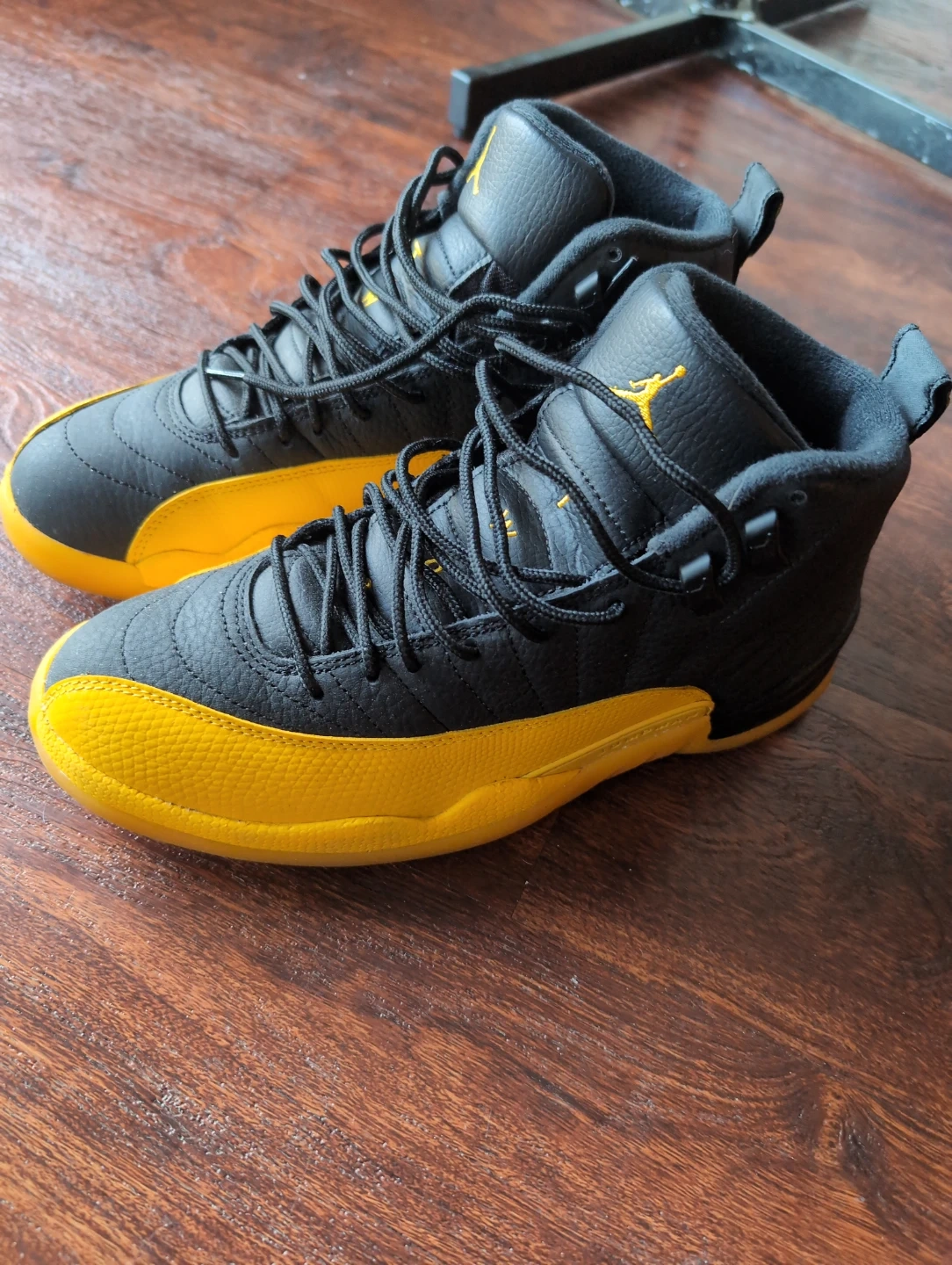 Selling a pair of Air Jordan 12 Retro 'Taxi' sneakers. These shoes feature a black and yellow colourway. Good for casual wear or for collectors!