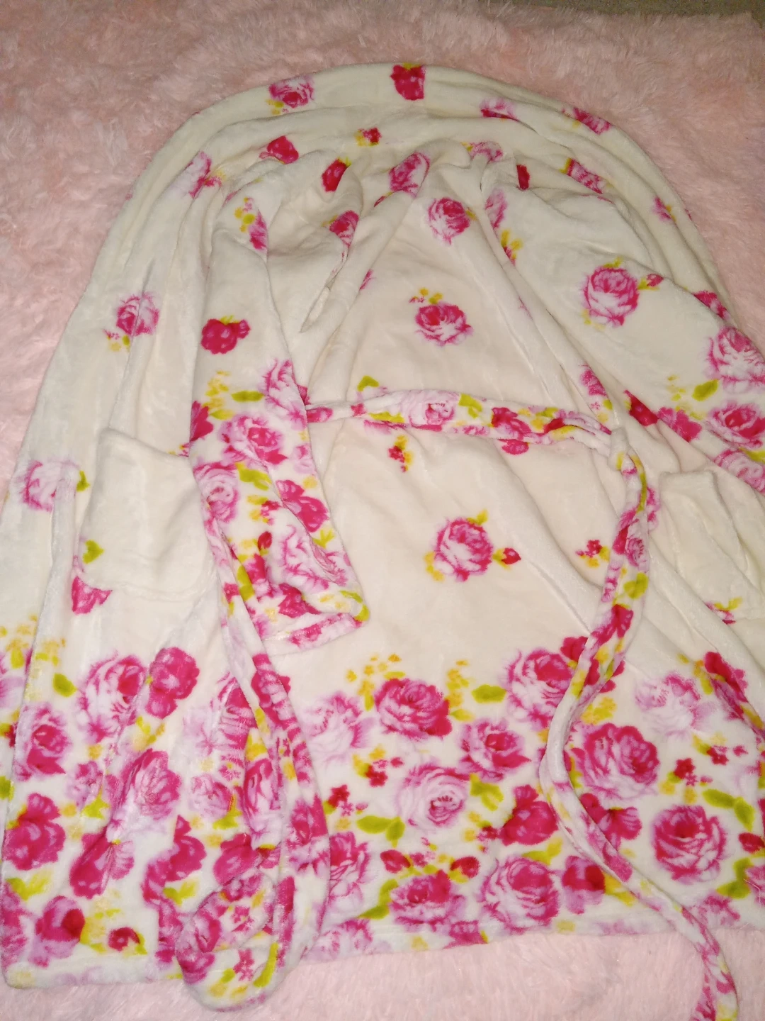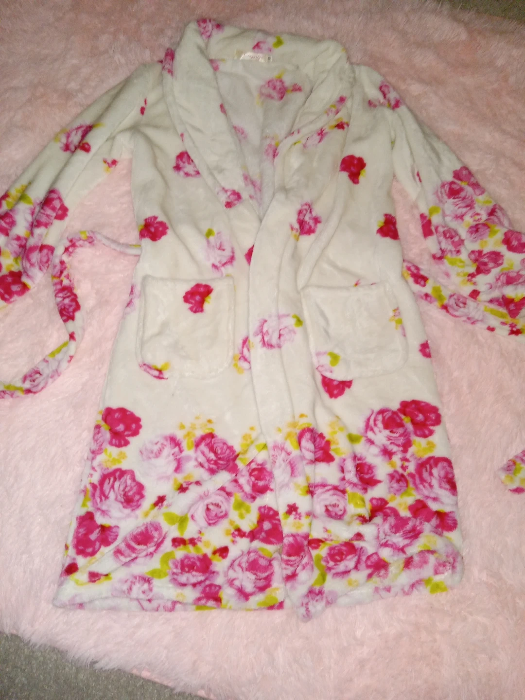 Selling a cozy robe with a pretty floral print! It's a size small and in great condition. Perfect for lounging around the house or after a shower. It's soft and comfortable, ready for a new home