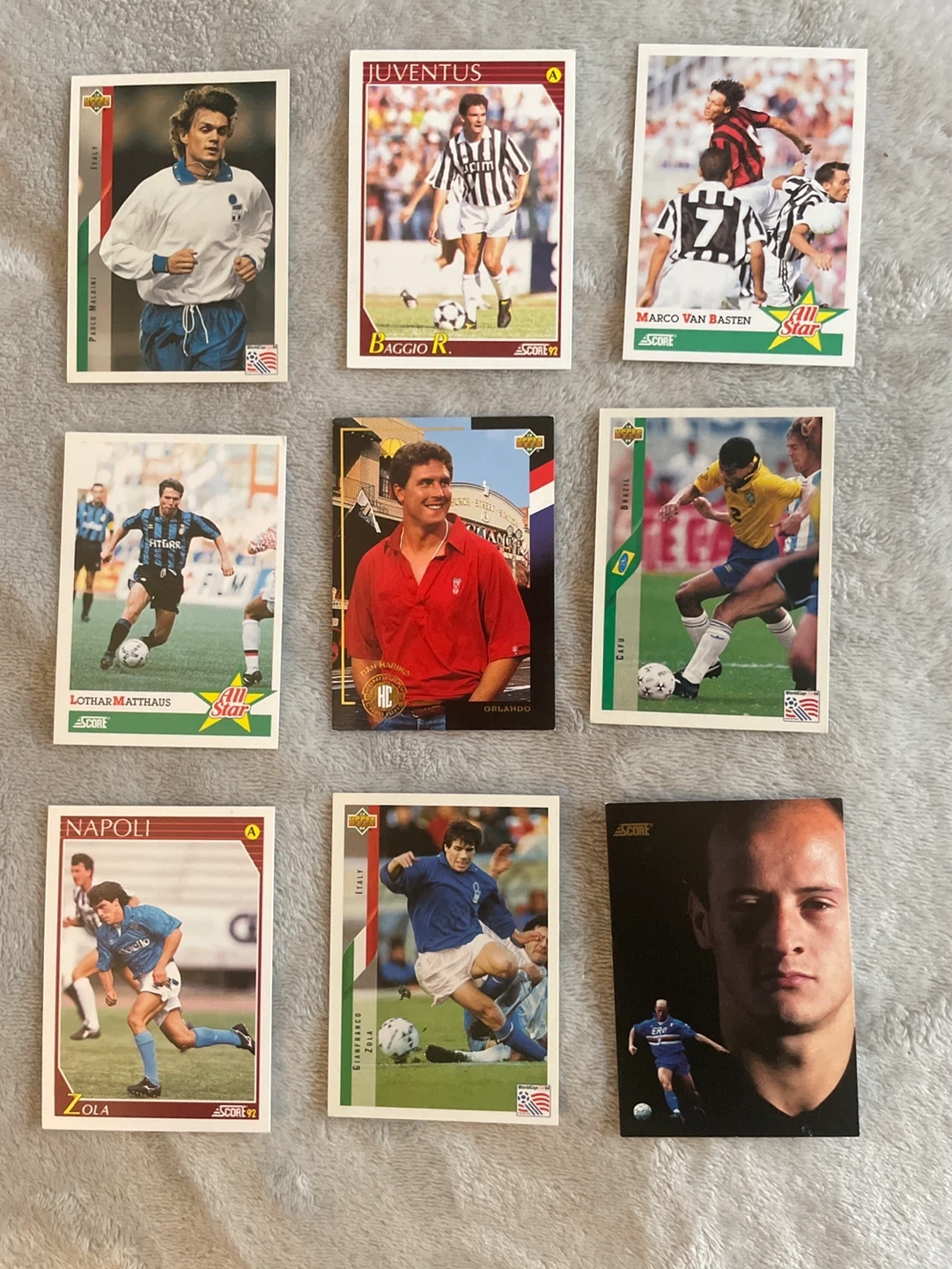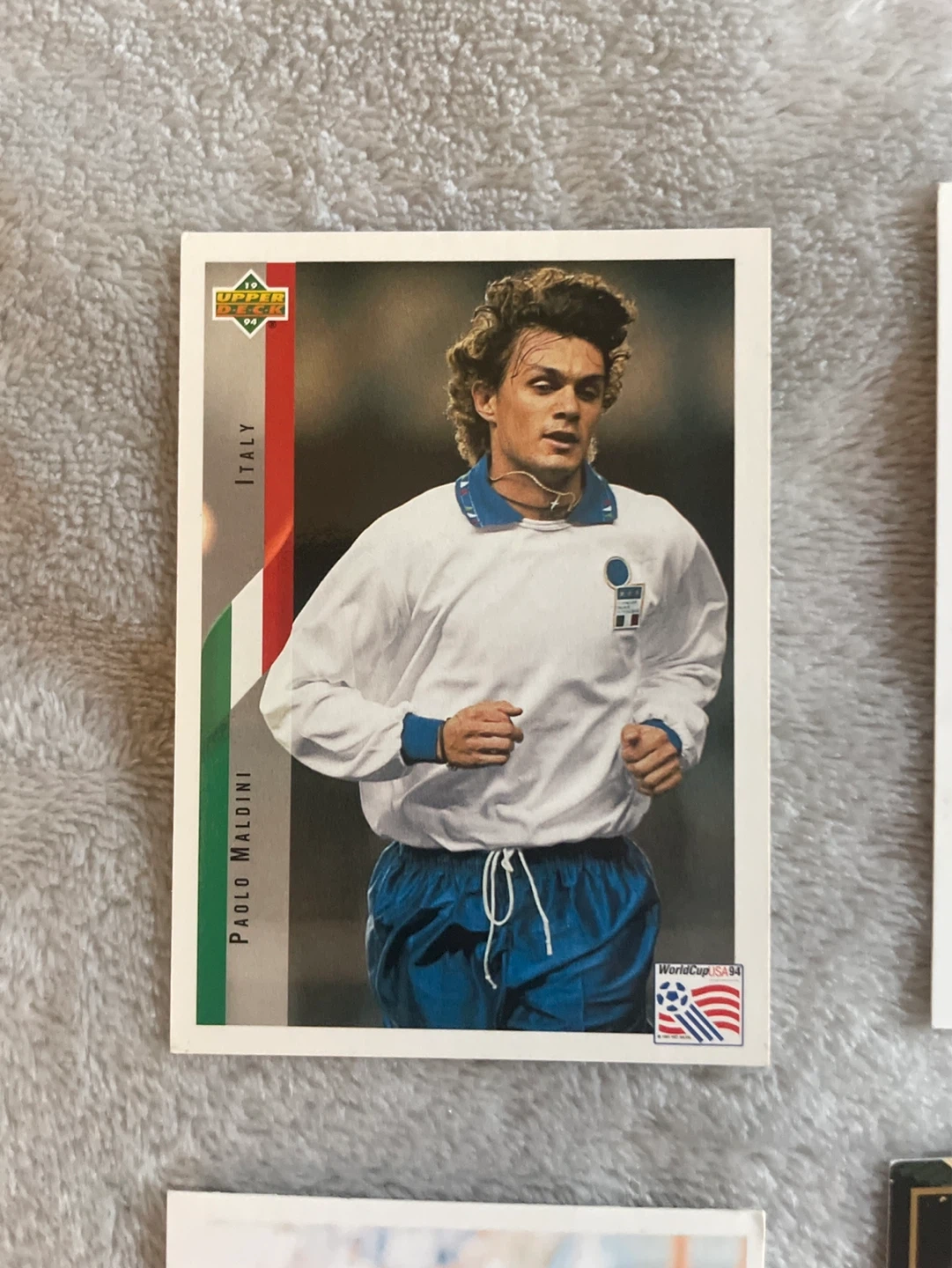 Includes cards featuring Paolo Maldini, Marco Van Basten, Lothar Matthäus, and Roberto Baggio. These are from Upper Deck and Score sets. Great collectibles for soccer fans! Also I can sell them individually.