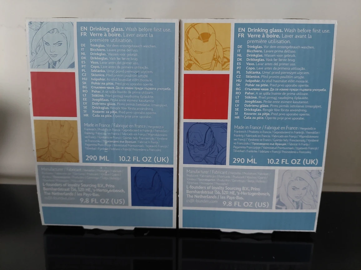 This set includes two Marvel collectible drinking glasses featuring Black Widow and Iron Man. Each glass holds 290 ml. Brand new in original boxes.