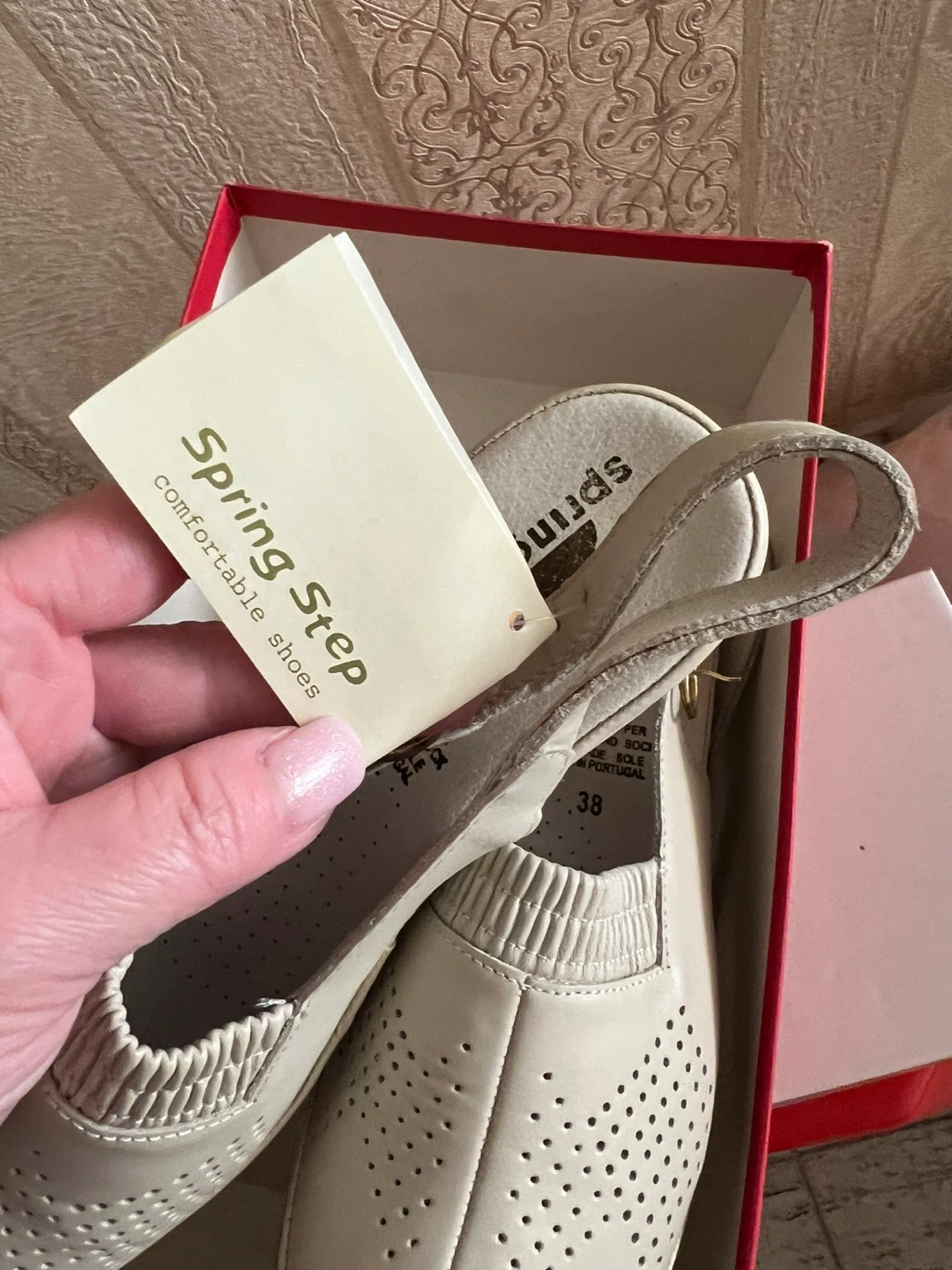 Spring Step Women's Beige Leather Slingback Shoes - Size 38