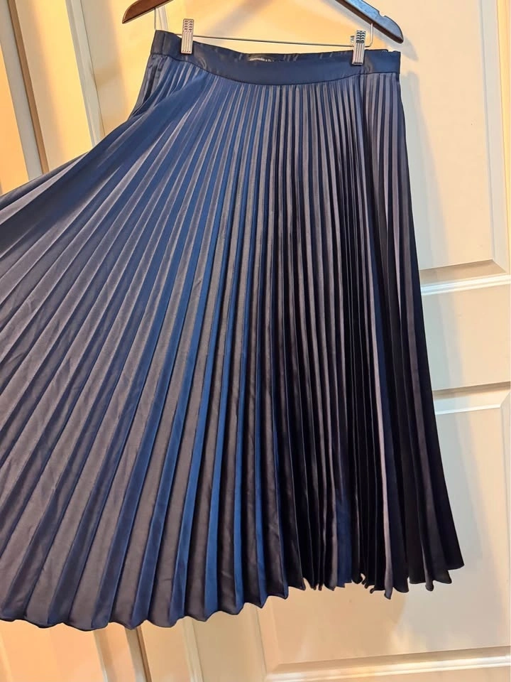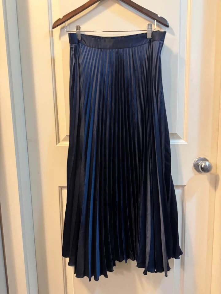 NWT Abercrombie & Fitch Navy Satin Pleated Midi Skirt - Medium