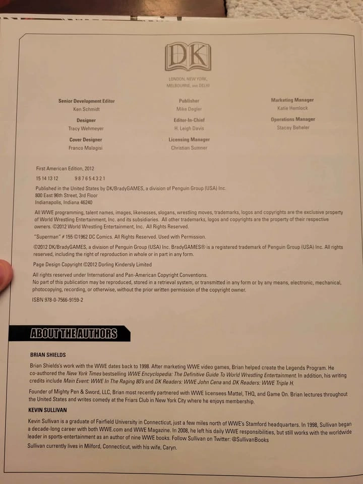 Rare out of print official wwe encyclopedia with in depth description of all past wrestlers from 2012 and before! Published by DK/BradyGAMES. In very good condition. Great for wwe fans and collecters alike. Comes with the dust cover. Better deals if you buy multiple things from my other listings.