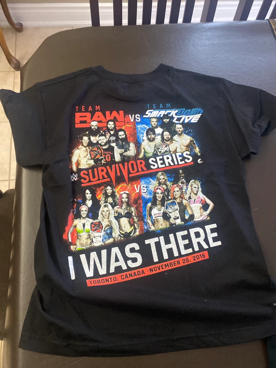 Selling a WWE Survivor Series t-shirt in youth size large (LGG). The shirt features a design from the Survivor Series event held in Toronto on November 20, 2016. It's made of 100% cotton.