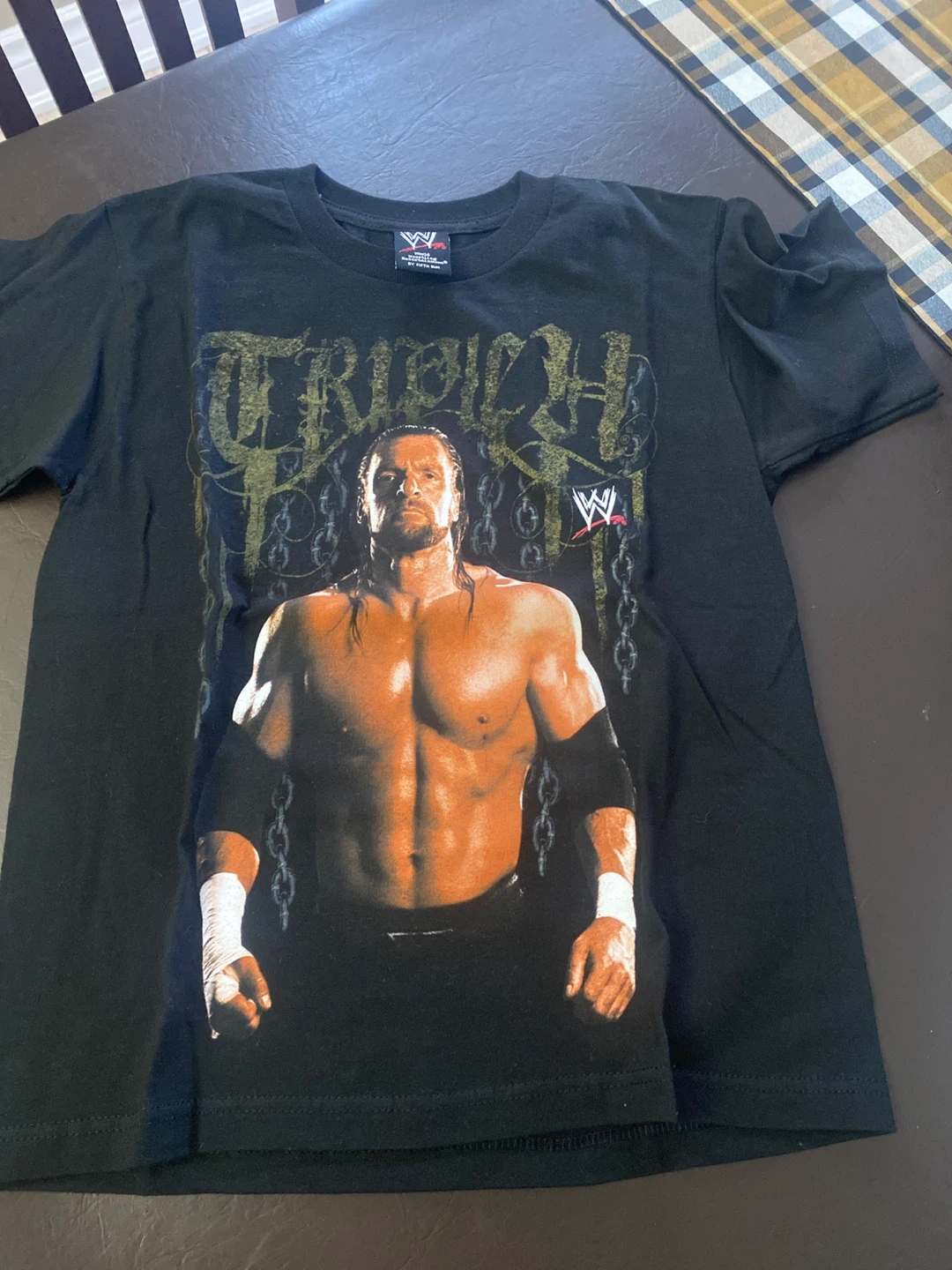 Up for grabs is a black WWE t-shirt featuring Triple H! It's in great shape and ready for a new home. Perfect for any wrestling fan