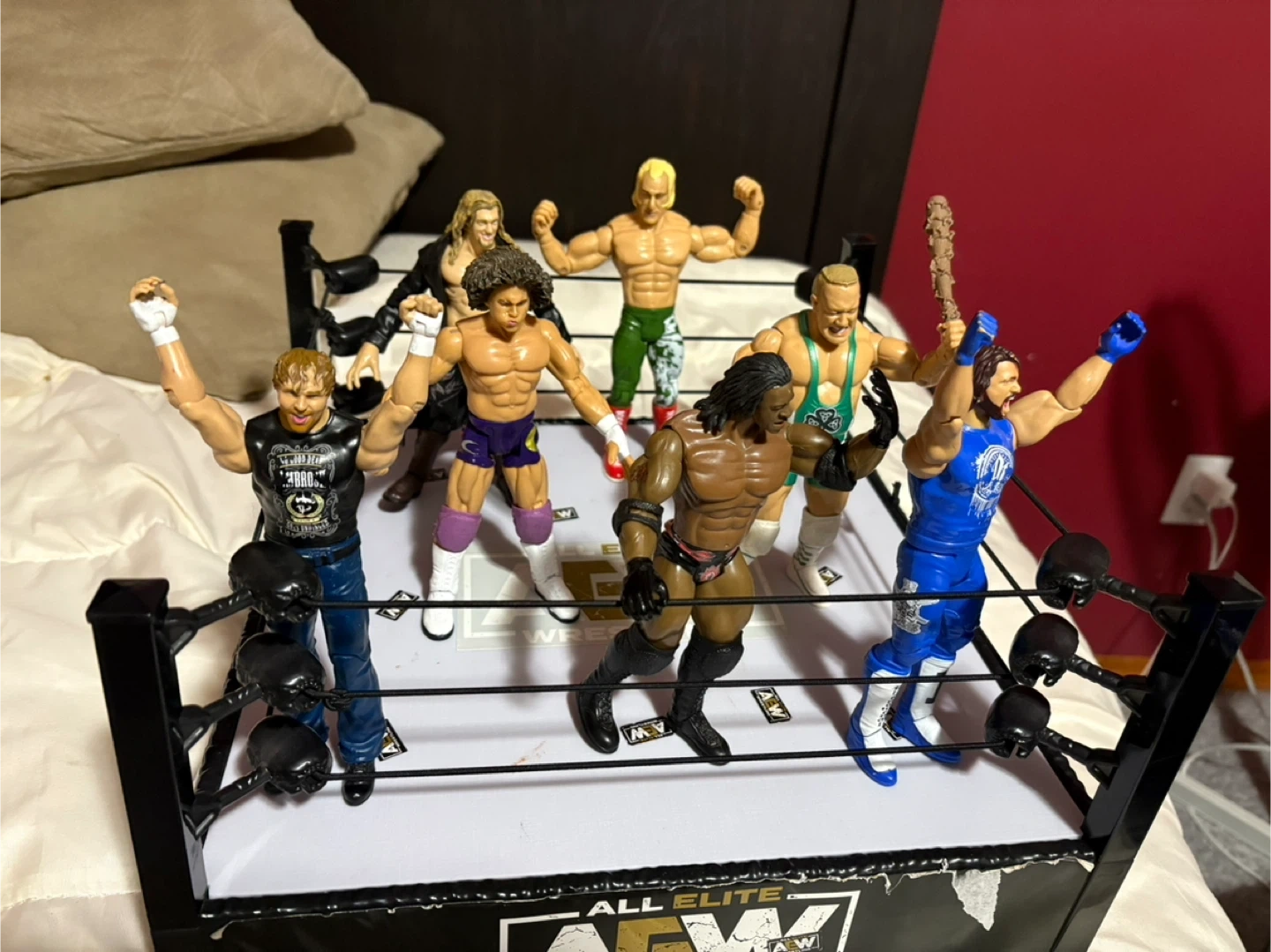 20Selling a set of WWE wrestling action figures sorry but wrestling ring NOT INLUDED. Comes with EDGE / CARLITO / BOOKER T / AJ STYLES/ BILLY GRAHAM / DEAN AMBROSE & FINLEY Great for collectors or kids who love wrestling! Asking $10 Ea or get the whole LOT for $50 Delivery extra FCFS