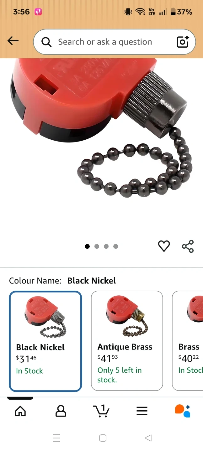This is a red ceiling fan light pull chain extender. It comes with a metal beaded chain. These are useful for extending existing pull chains.