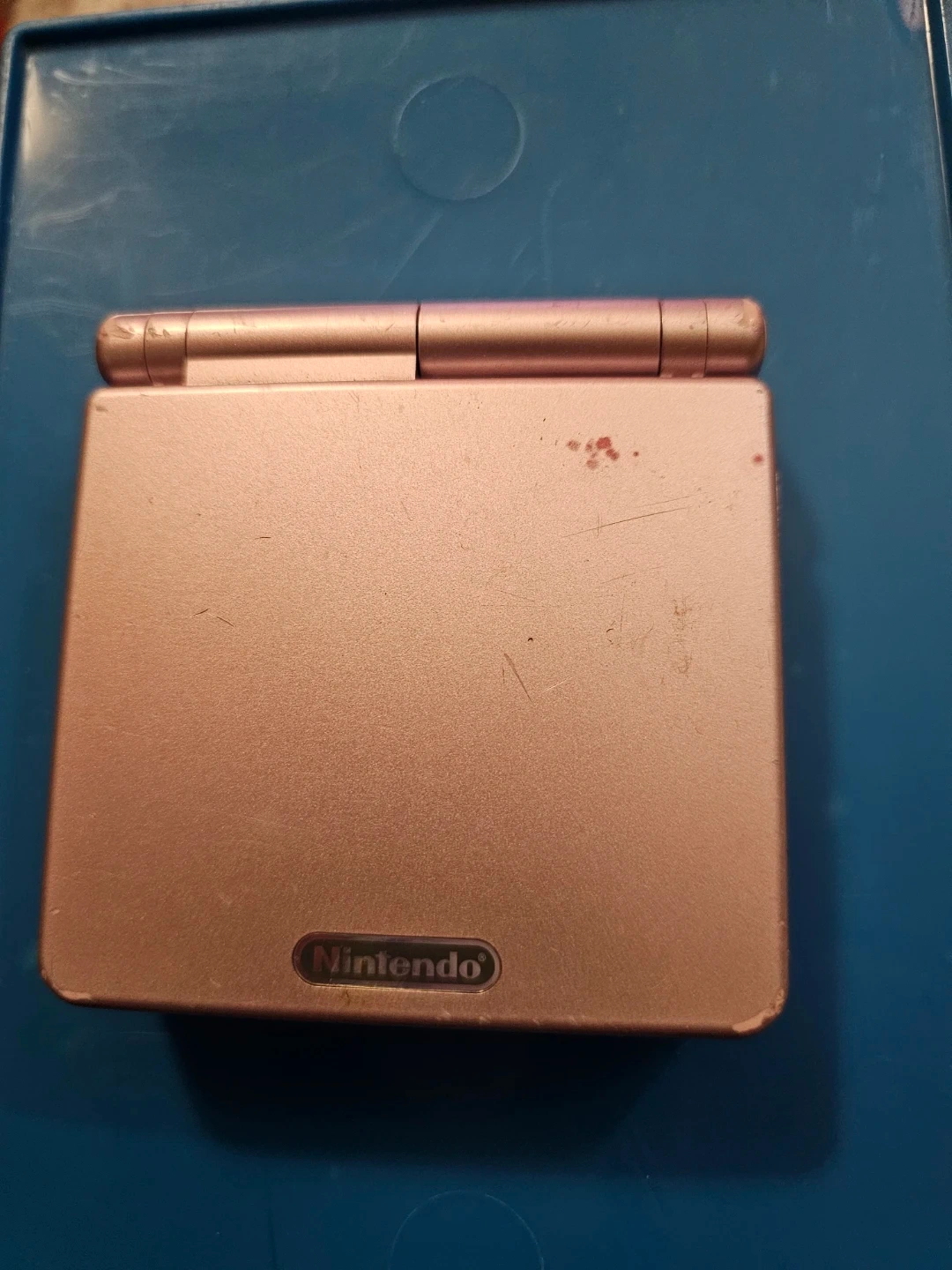 Game Boy Advance SP in pink with Mario Tennis Power Tour game cartridge. Device has wear consistent with use. Includes the game cartridge and console but no charger.