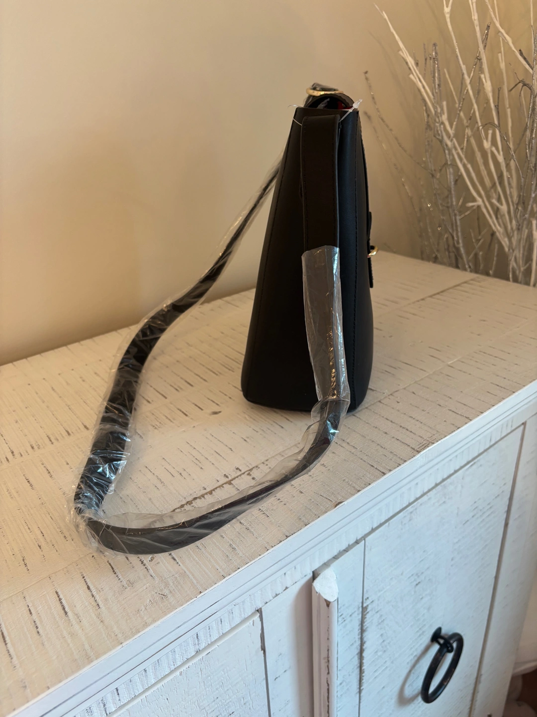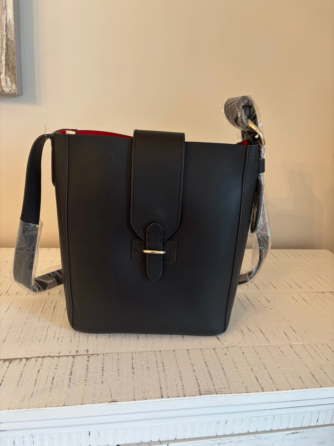New-Banana republic, gorgeous leather bag with red interior. Bg has natural leather scuffs & lines. Has an interior pocket.