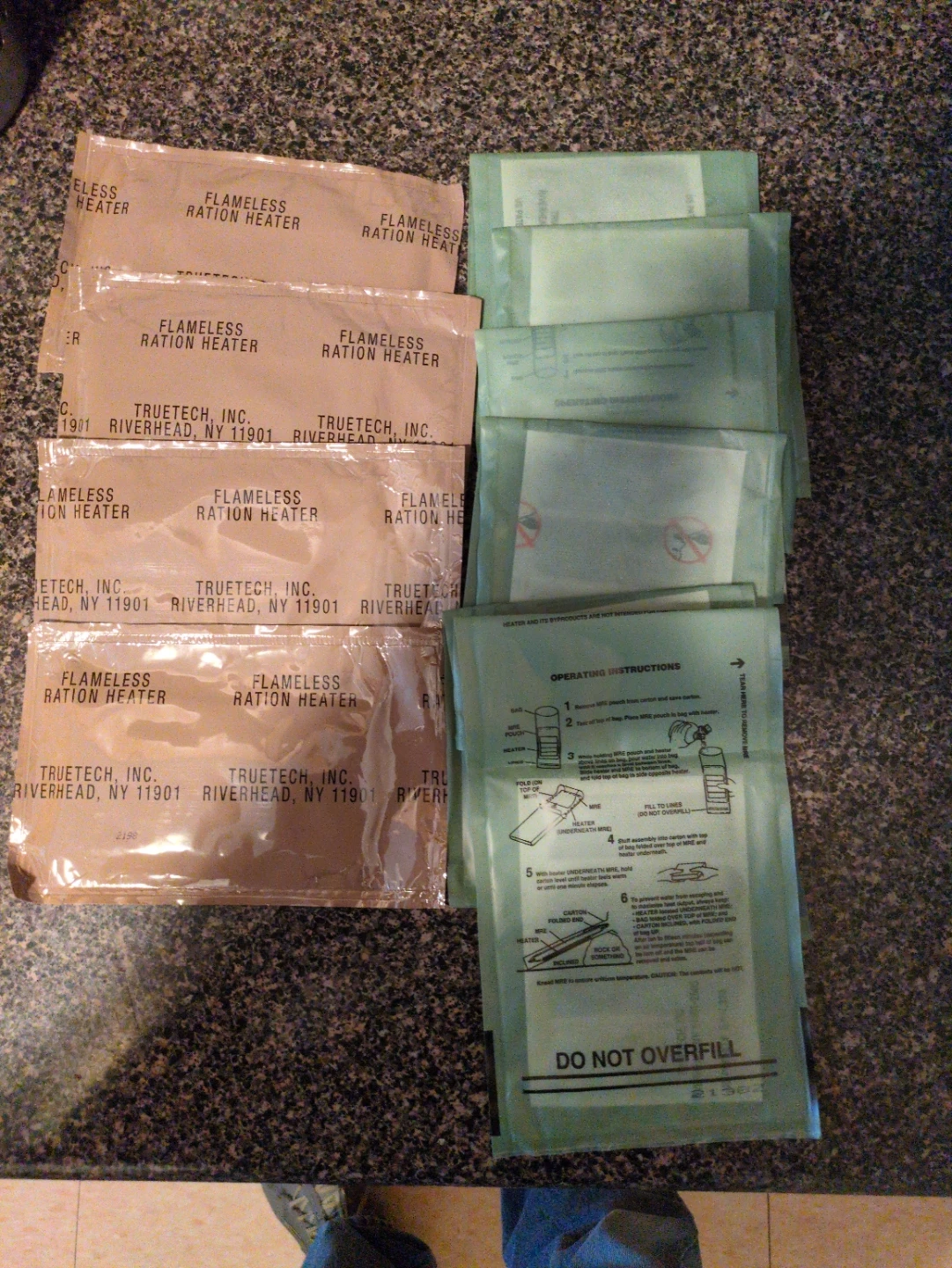 This is a 10 pack of flameless ration heaters from Truetech Inc. They are manufactured by Truetech, Inc. and are designed to heat MRE pouches. Each heater is individually wrapped and ready for use. 10 heaters included.