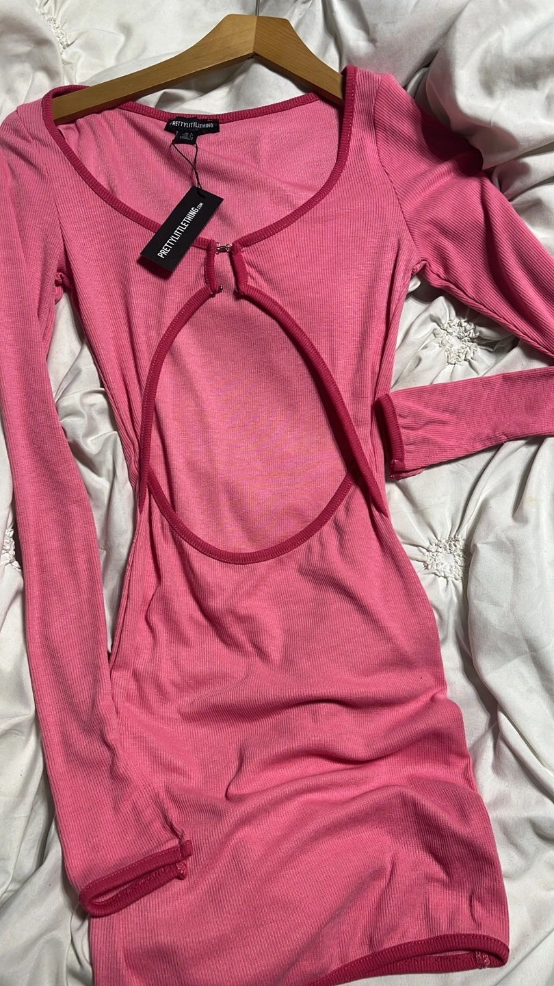 PLT Pink ribbed hook & eye cut out bodycon dress (brand new- tag still attached)