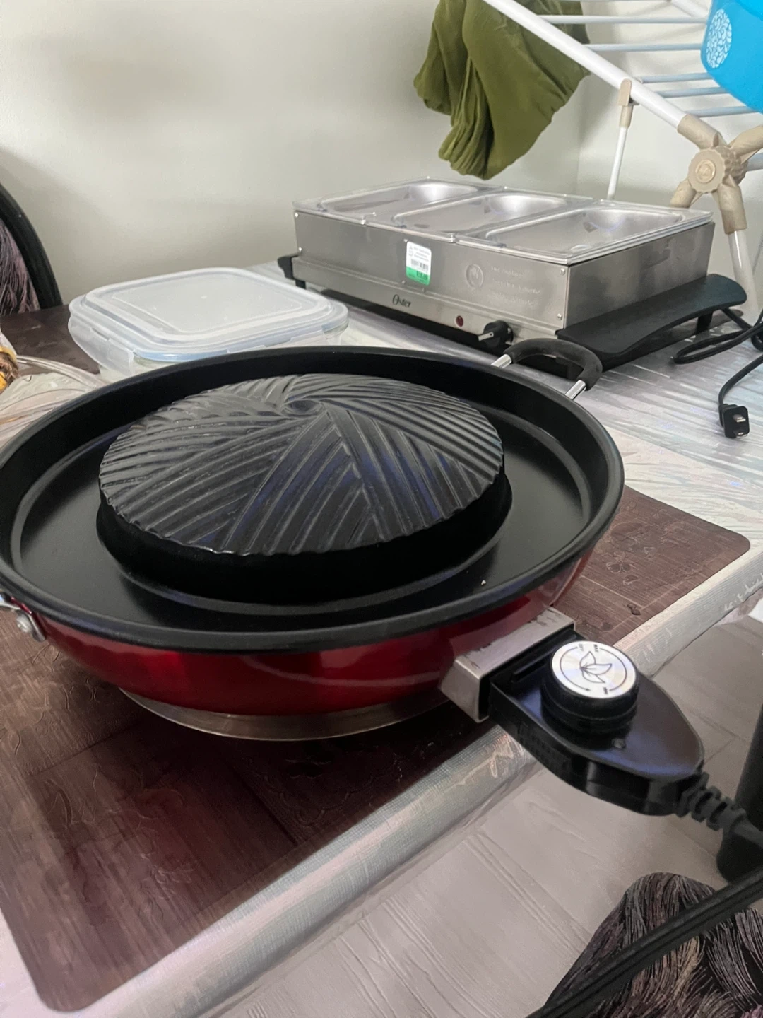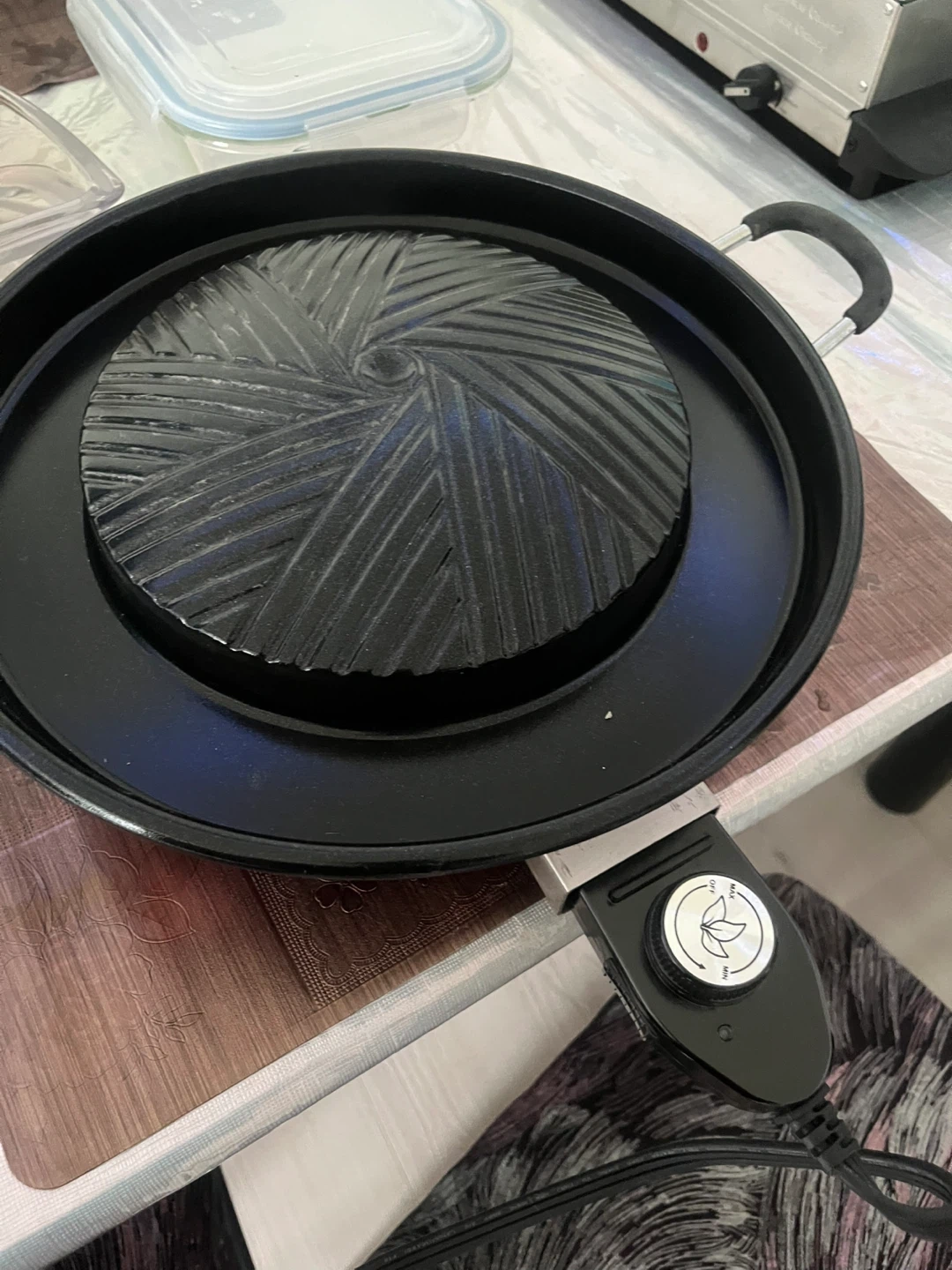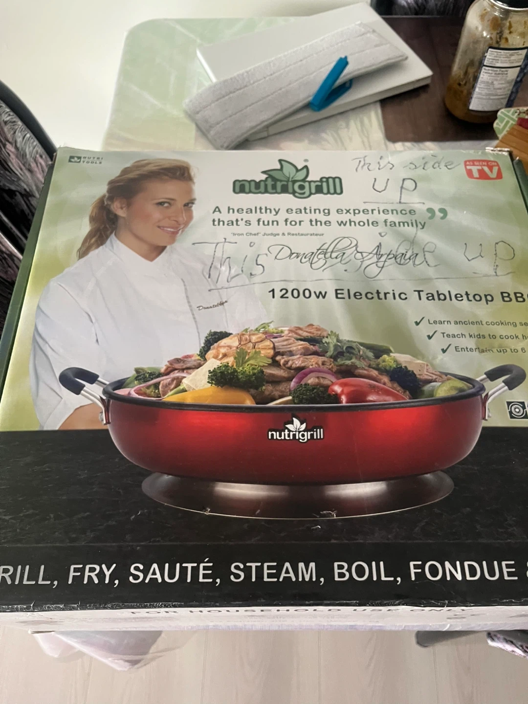This is a NutriGrill 1200W electric tabletop BBQ. It's designed for grilling, frying, sautéing, steaming, boiling, and fondue. It's great for family meals and teaching kids to cook! Comes with booklet that includes recipes too!