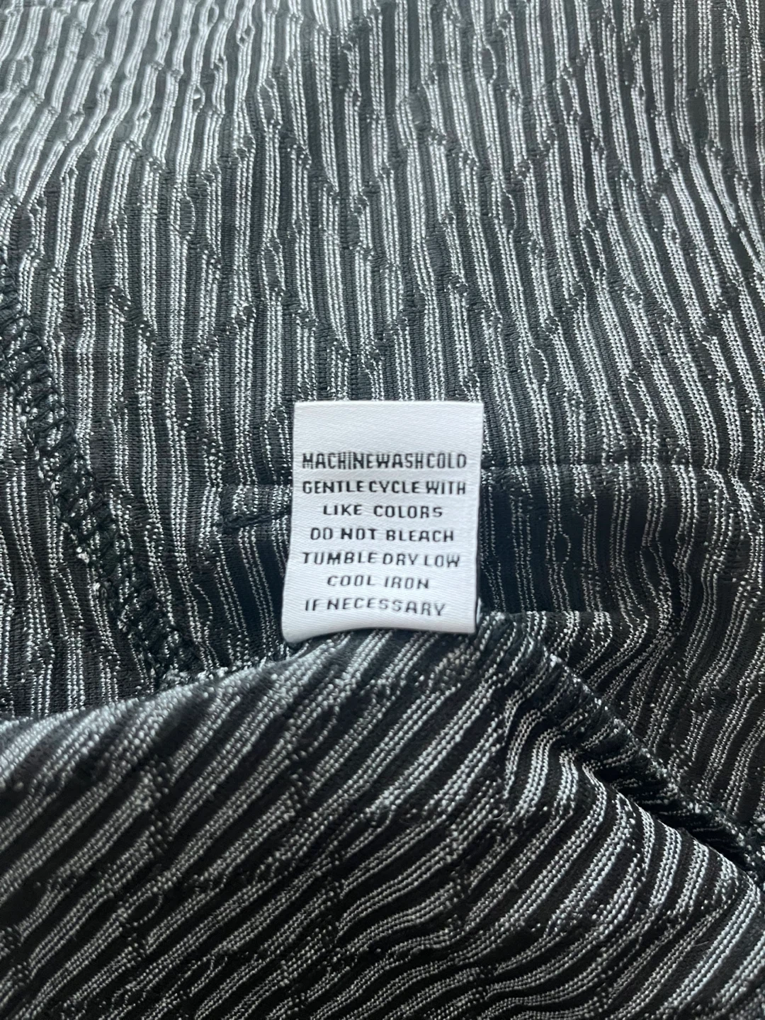 This Habitat sleeveless vest is a women's size medium. It features a black and white patterned fabric and a full zip-up front. It's a great layering piece for cooler weather!