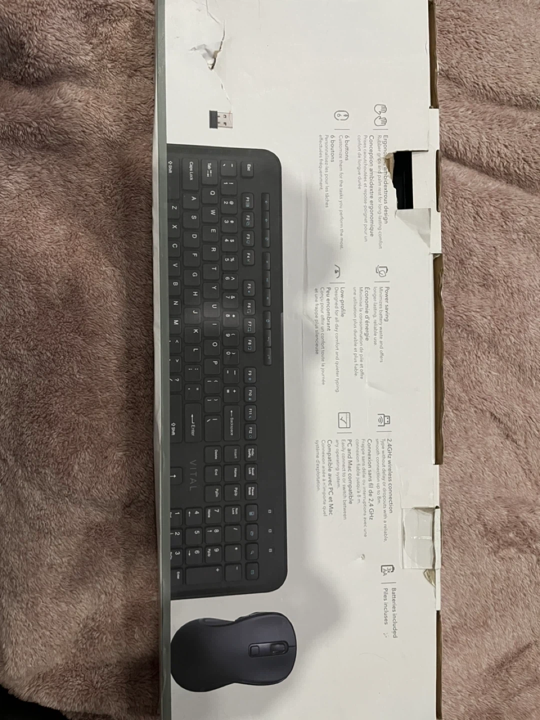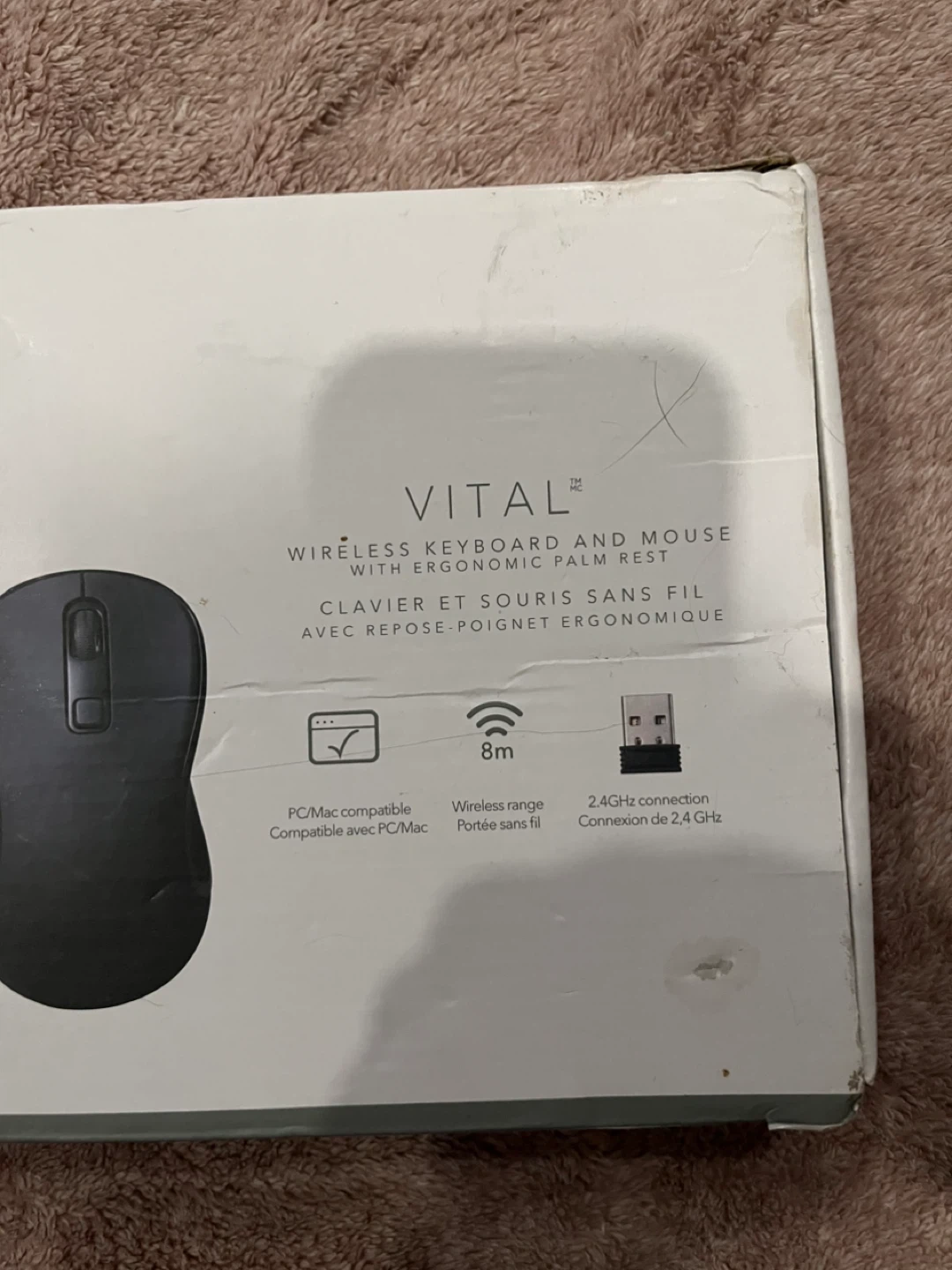 This Vital wireless keyboard and mouse set offers 2.4GHz connectivity with a range of 8m. It's PC/Mac compatible and includes an ergonomic palm rest for comfortable use. Batteries are included!