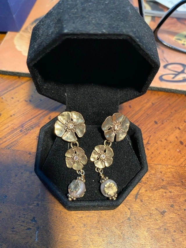 * Design: The earrings feature a drop or dangle style with multiple floral elements, consistent with the brand's nature-inspired designs.