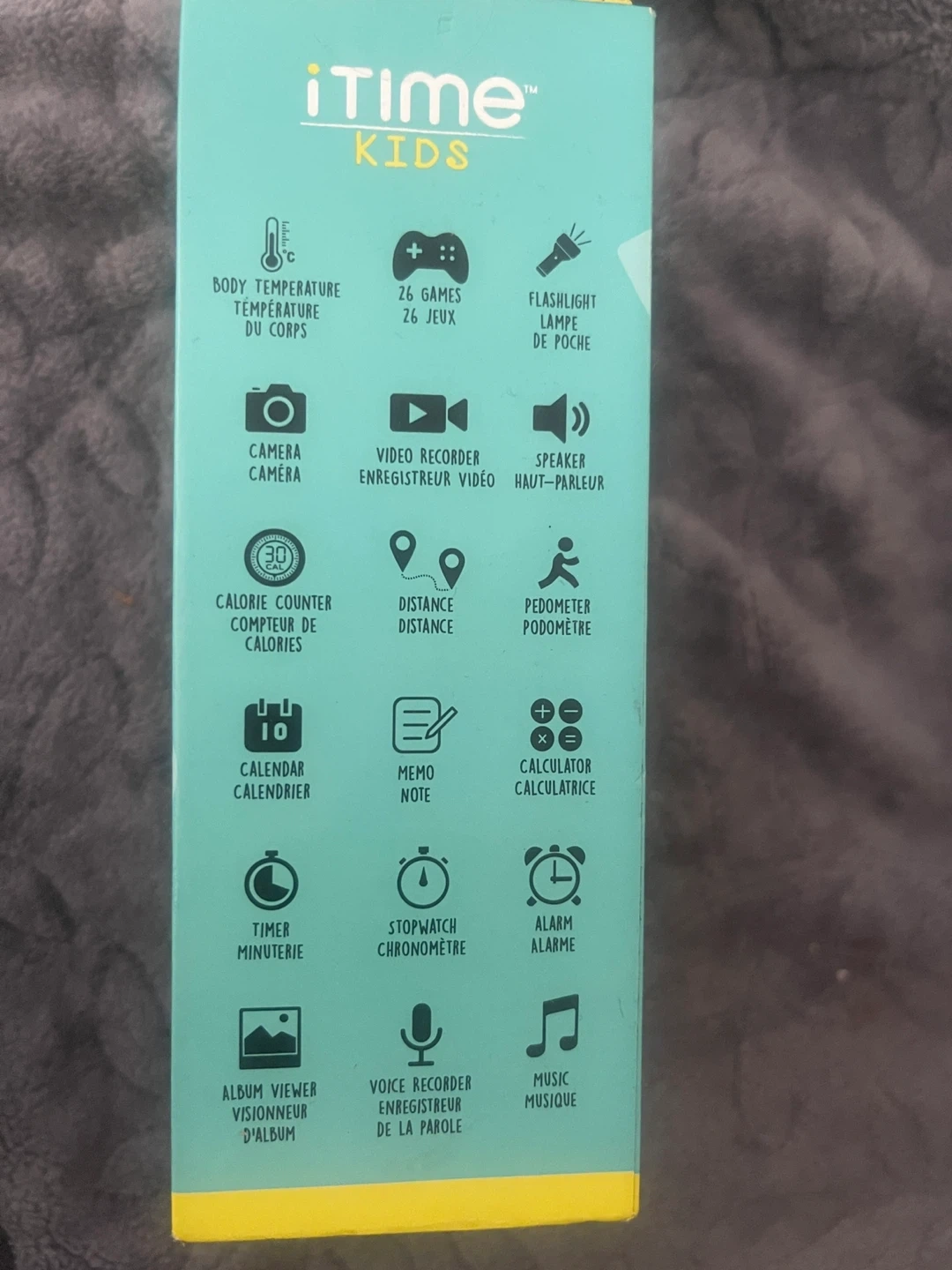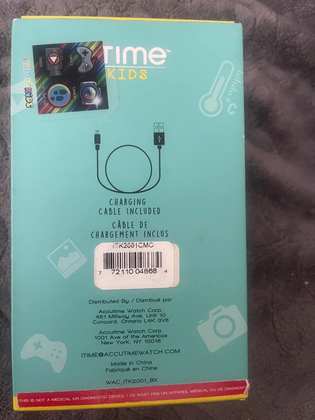 Selling an iTime Kids Body Temperature/Games Watch. It comes with the original box and a charging cable. This watch has 26 games, a camera, a video recorder, a calorie counter, and more! Originally bought for $49.97