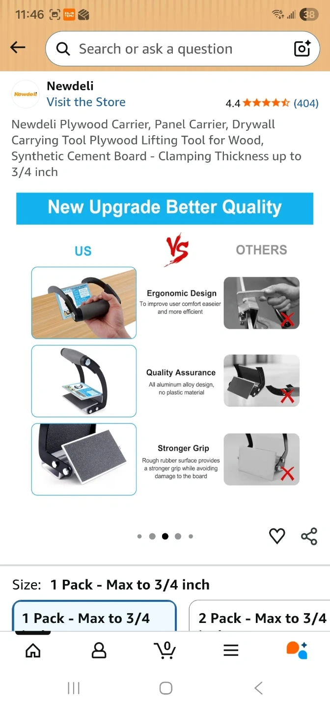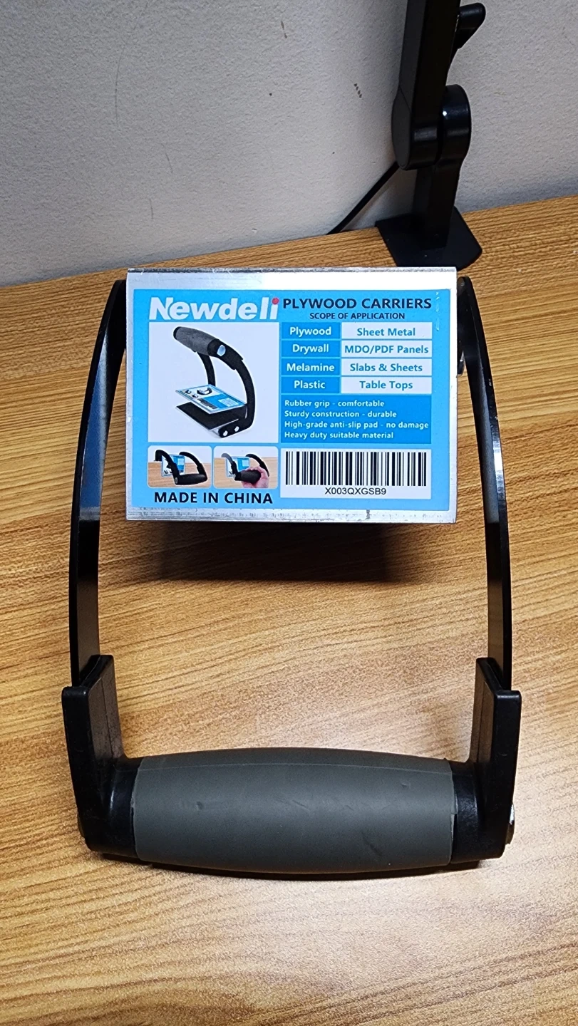 This Newdeli panel carrier is designed for lifting plywood, drywall, and sheet metal. It features a sturdy construction with a rubber grip handle for comfort and a clamping thickness up to 3/4 inch. Its ergonomic design helps user comfort and efficiency.