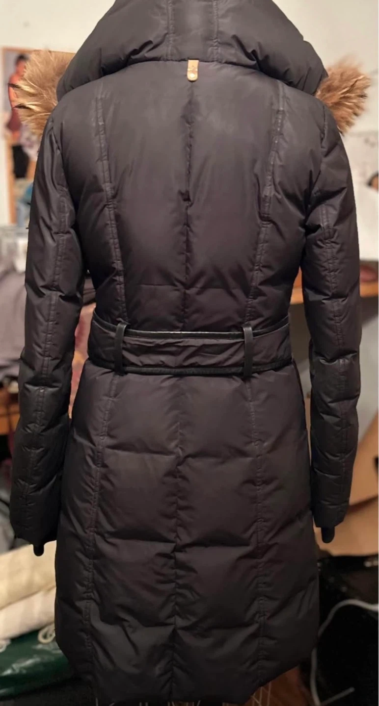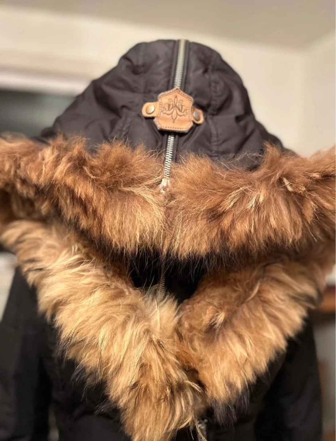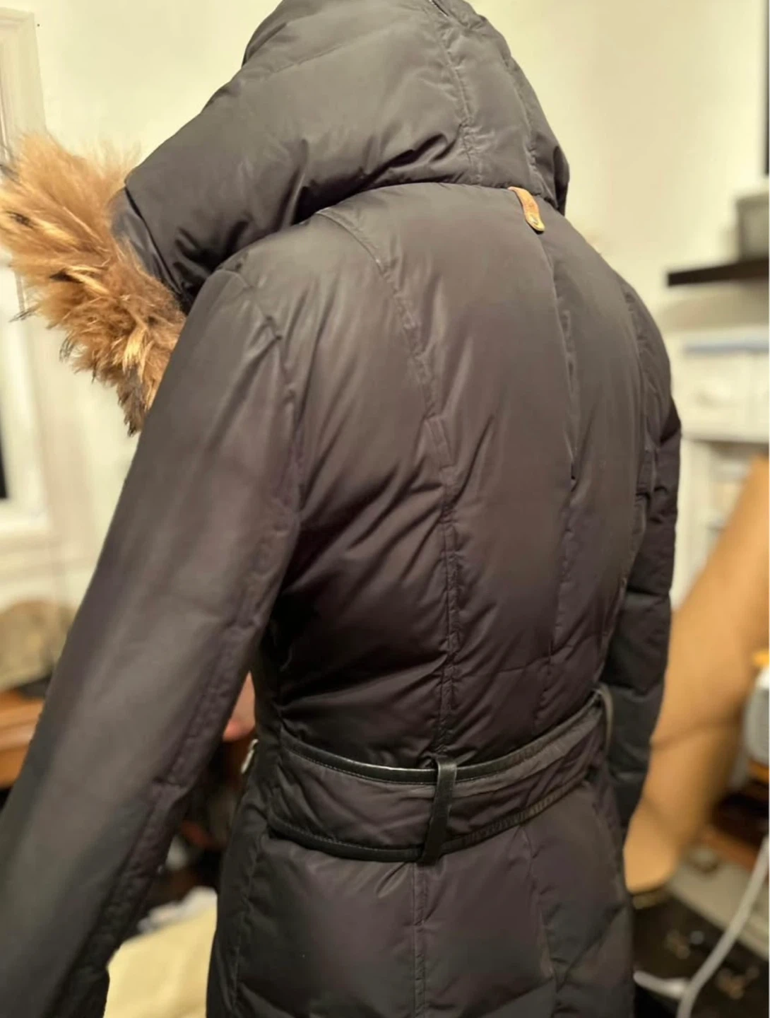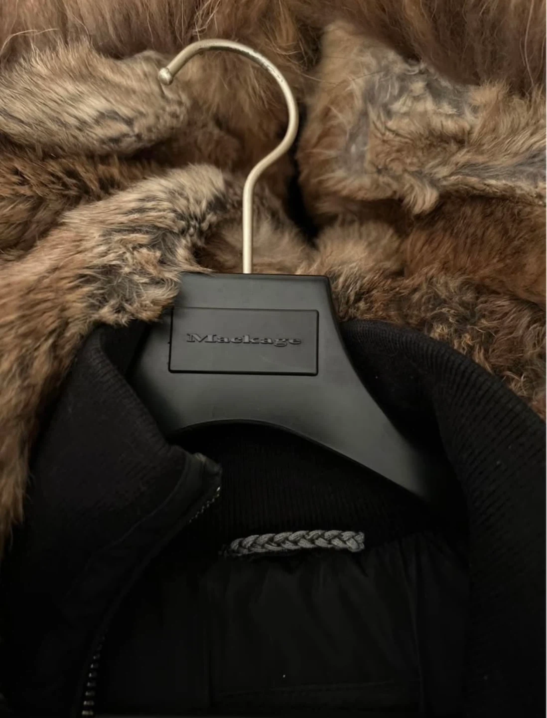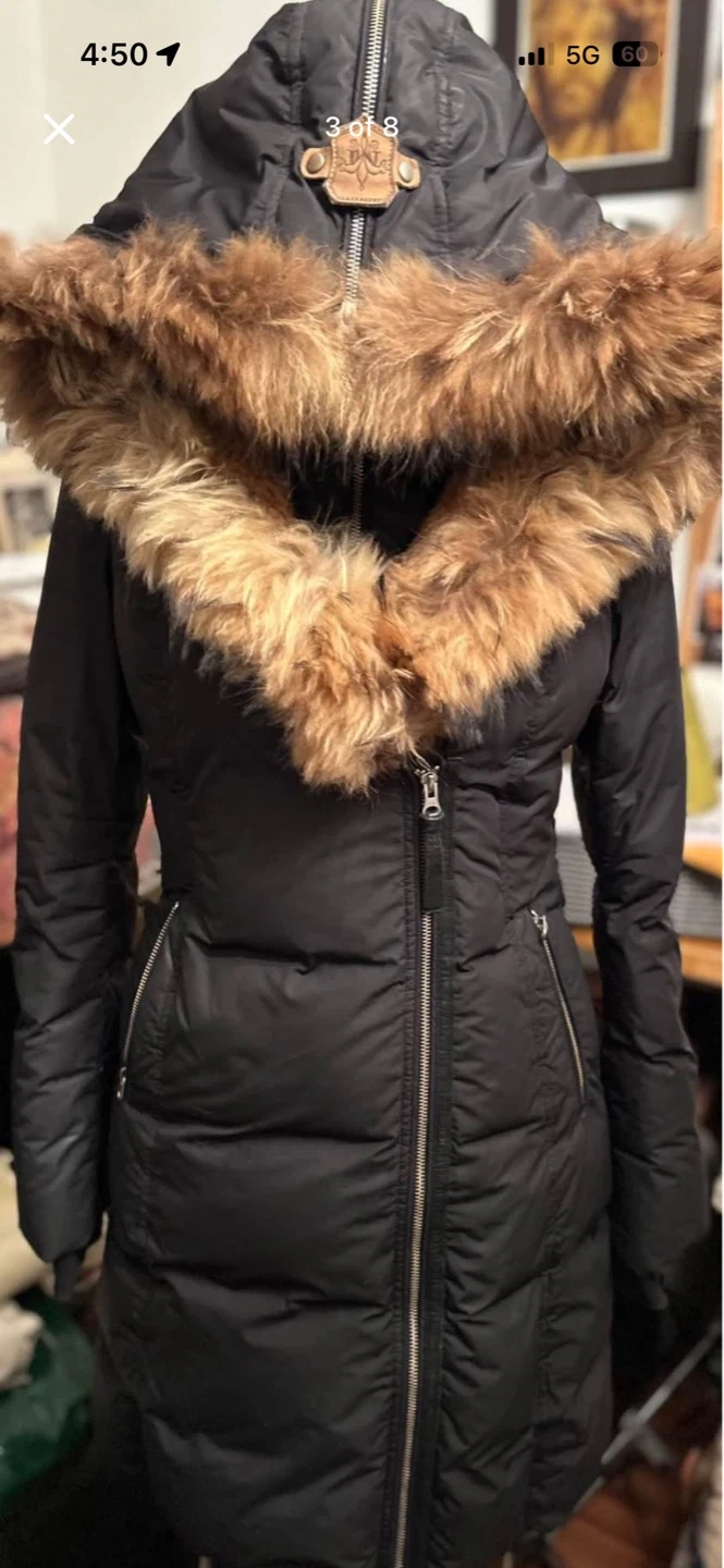 This Mackage parka is black and features a fur-trimmed hood. It's a size S/P , no damage & dry cleaned