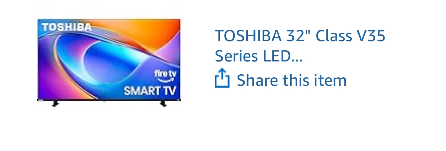 Toshiba 32-inch V35 Series LED Smart TV. This is a 32-inch smart television. It's great for bedrooms or smaller living spaces!