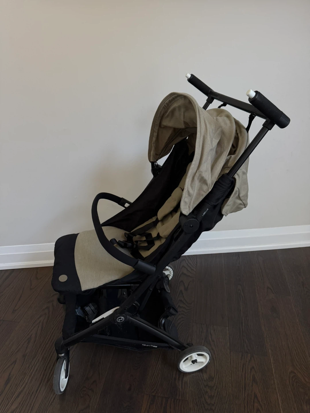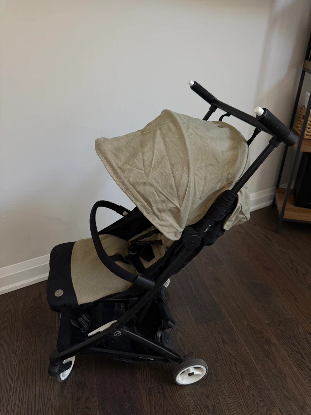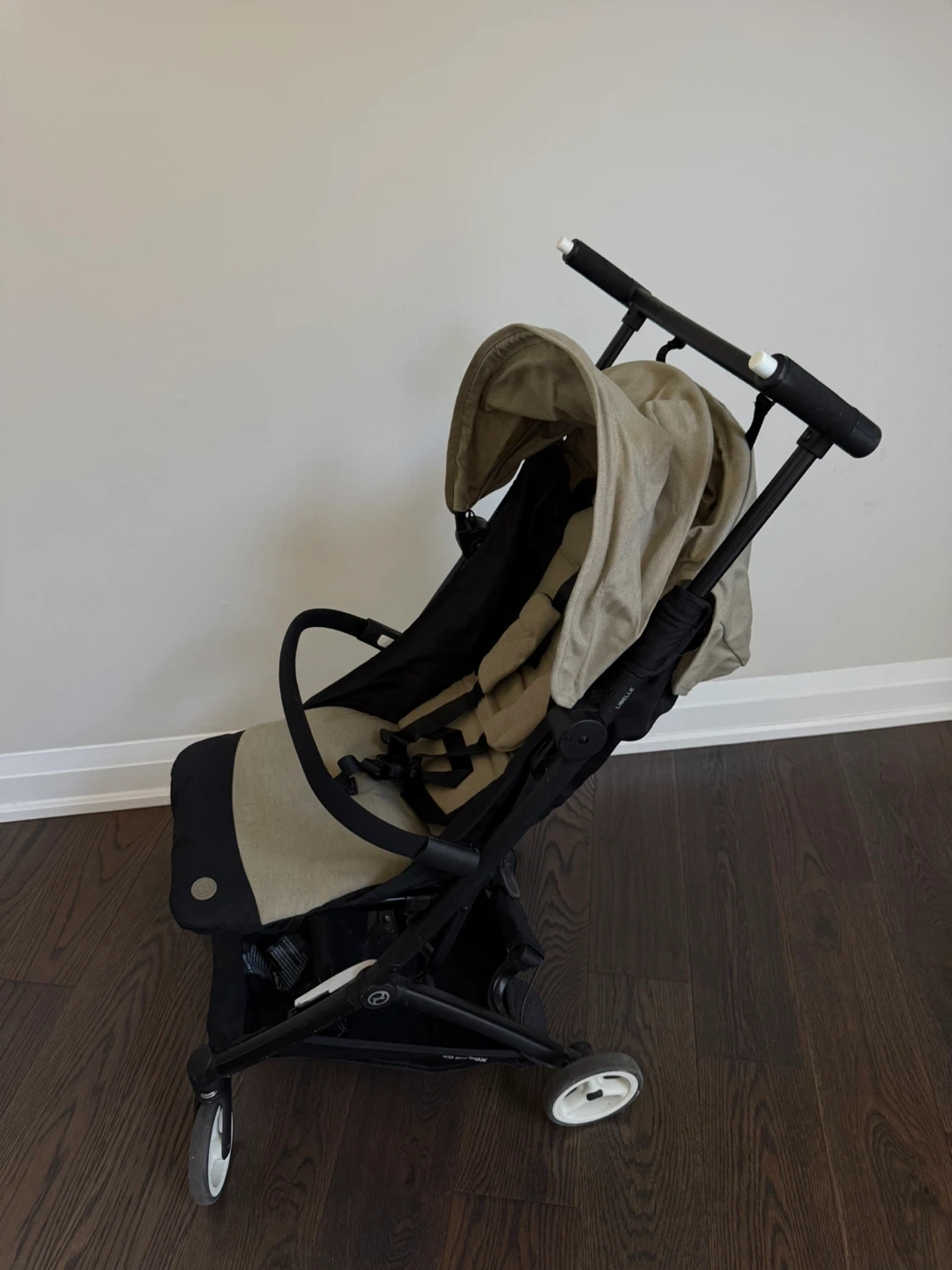 Lightweight and compact CYBEX Libelle stroller, perfect for travel. It features a small folding size and breathable fabric. The seat reclines for comfort. It's easy to manoeuvre. This stroller is great for parents on the go!