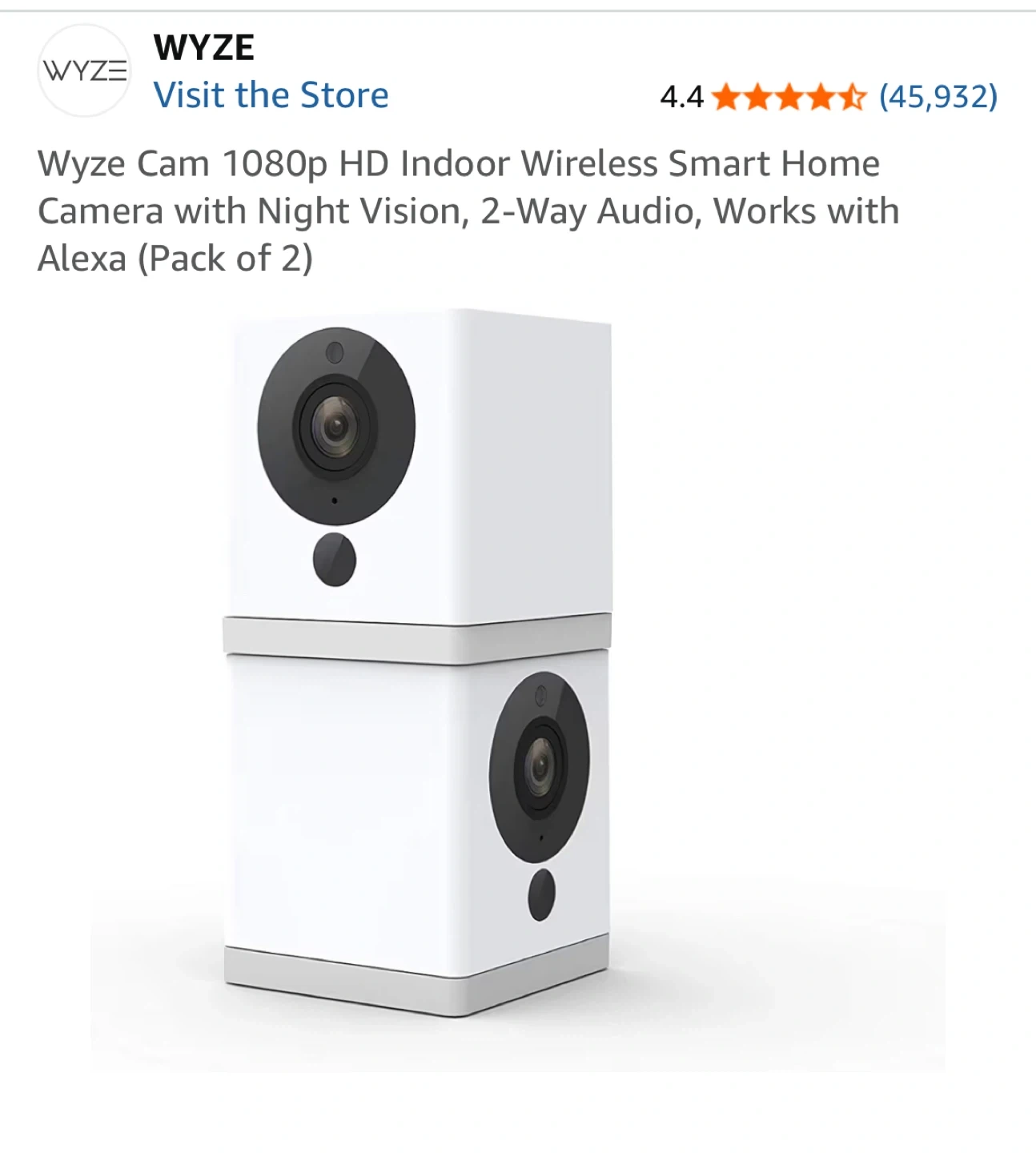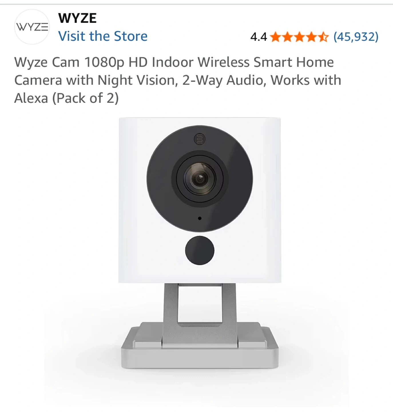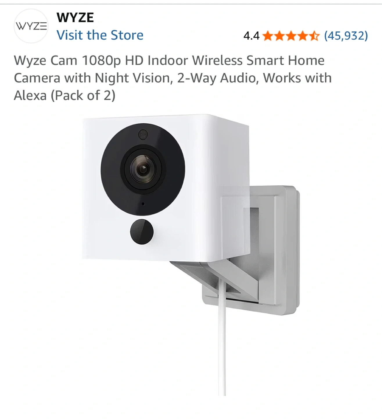 385Selling a pack of two Wyze Cam 1080p HD indoor wireless smart home cameras! They have night vision and 2-way audio. They also work with Alexa. Great for keeping an eye on things! Wyze Cam V2 delivers fast, clear, live stream footage direct to your smartphone via the wyze app (iOS and Android), day or night. With motion and sound detection you can receive an alert anytime your wyze Cam V2 detects sound and motion, and view up to 14 days of saved alert videos for free - no monthly fees or subscription required. Use the wyze Cam v2’s new motion tagging feature to easily identify motion in both live stream and playback video modes. Plus, you can add an 8GB, 16GB or 32GB microSD card (sold separately) to enable continuous recording and schedule custom time lapse videos, and use 2-way audio to talk and listen through your wyze Cam V2. Use the wyze app to manage and view multiple cameras, share your cameras with other users, view alert videos, and record and share photos and videos directly from the app. The wyze Cam V2 must be powered to use (it does not have a battery), and is designed for indoor use (it is not weatherproof). Power Adapter Input - 110-240V (AC/DC). WiFi: 802.11 b/g/n 2.4GHz (Does not support 5GHz network) Supports WPA and WPA2 protocols