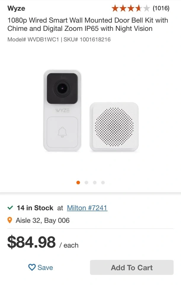 Wyze Video Doorbell for sale. Currently installed and working perfectly. Looking to move to a new system. Includes chime.