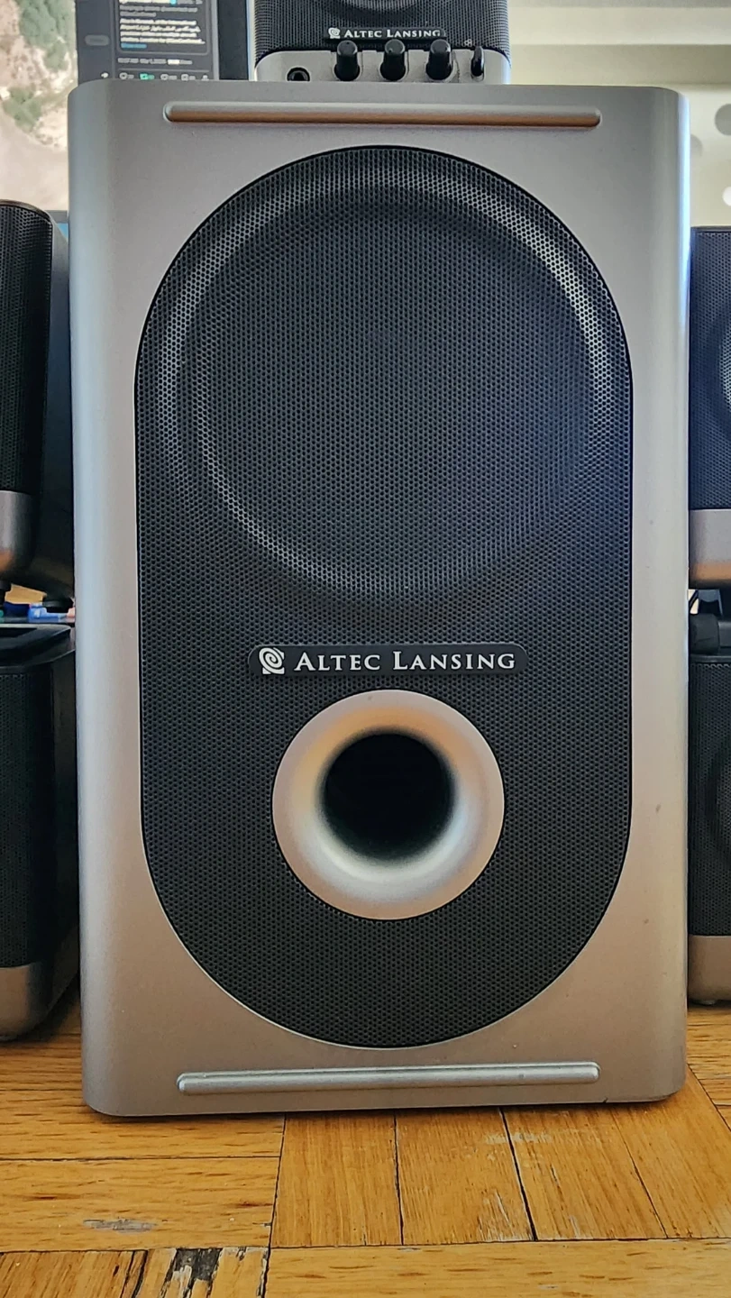 This Altec Lansing speaker system includes a subwoofer and satellite speakers. It's designed for immersive audio. Great for a desktop setup or small room!