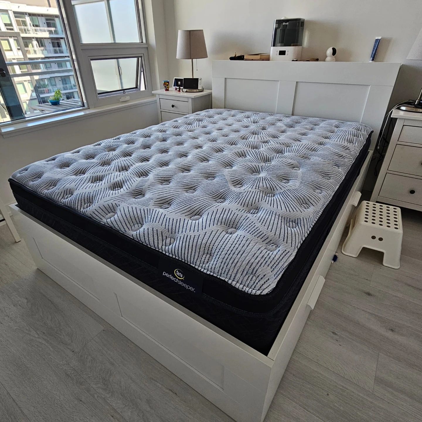 White MALM bed frame with four spacious storage drawers. Easy to assemble and adds plenty of storage to your bedroom. Bed measures 236 cm long by 158 cm wide. 10/10